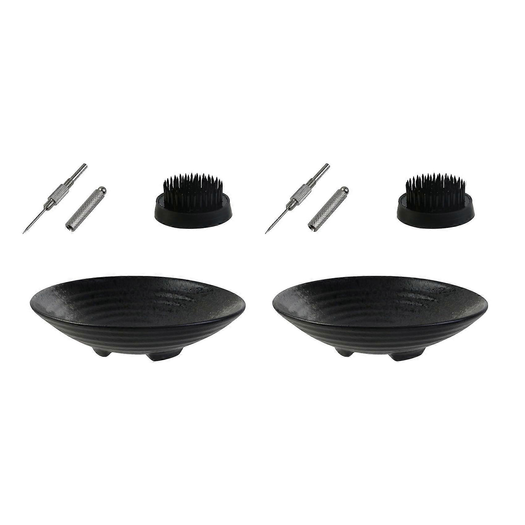 2X Ikebana Vase Kit, Ceramic Ikebana Bowl and Metal Flower Kenzan, with Needle Straightening Tool Black
