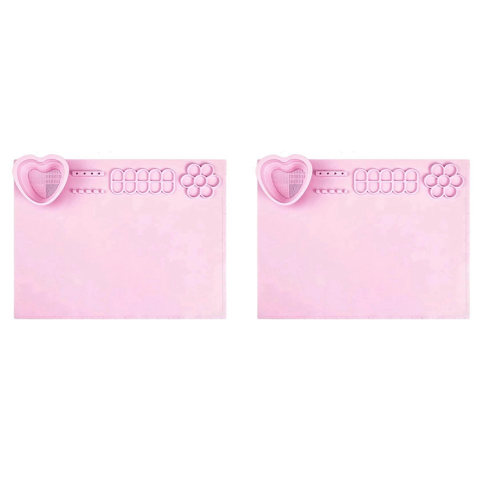 2X Paint Palette,Thick Silicone Craft Mat with Magnetic Pop-Up Water Cup,Large Silicone Mat for Adults and Children Pink