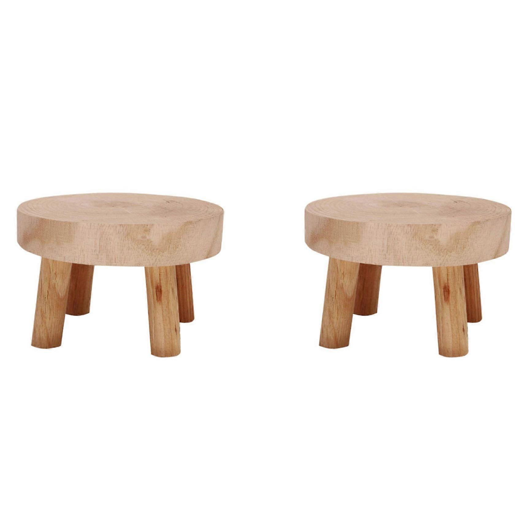 2X Mini Wooden Stool Display Plant Stand Decorative Wood Plant Stool Bonsai Holder for Indoor Outdoor Home Garden M