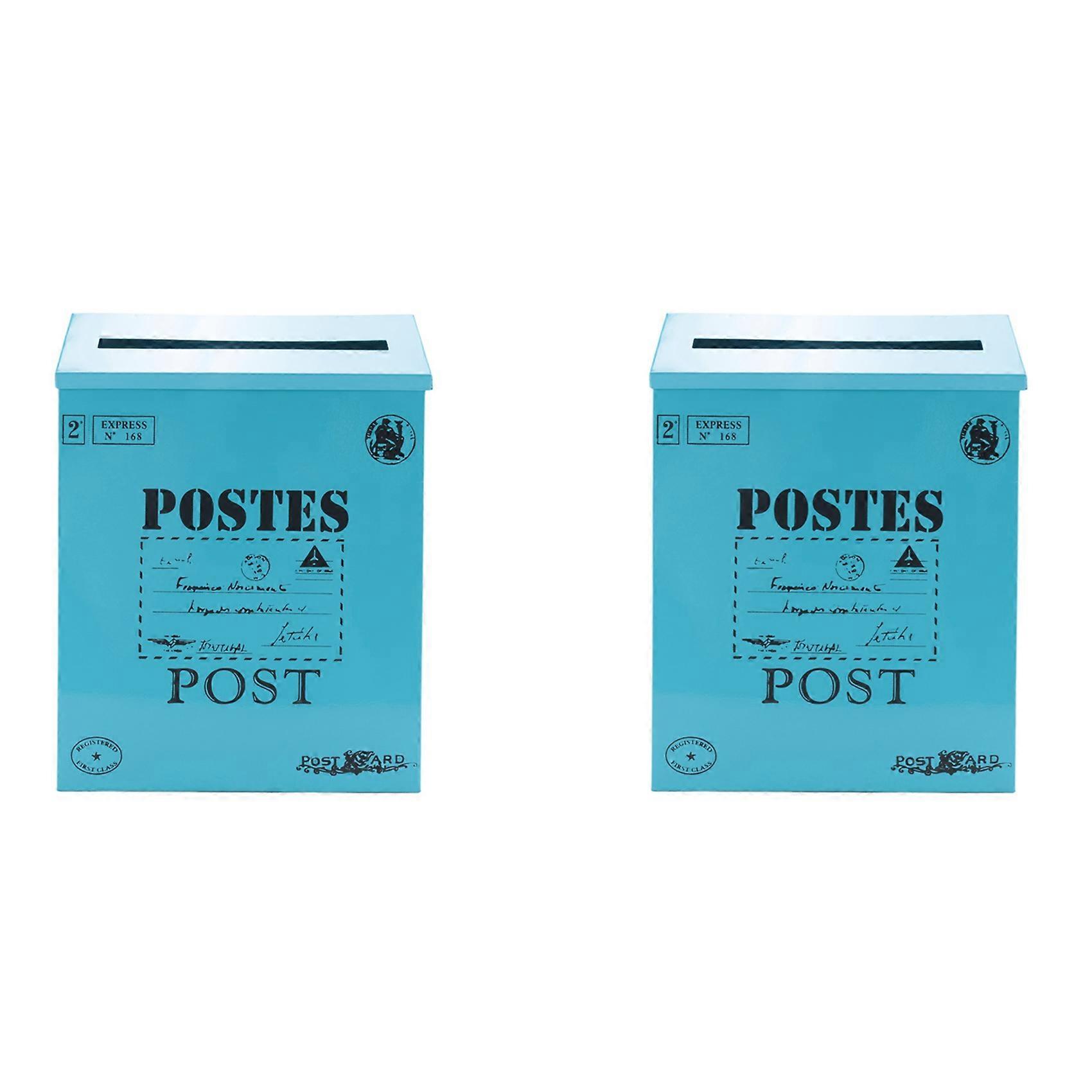2X Mailbox Vintage Wall Mount Mailbox Post Letter Box for Outside Antique Metal Mailbox Rust Resistant Mail Holder Blue