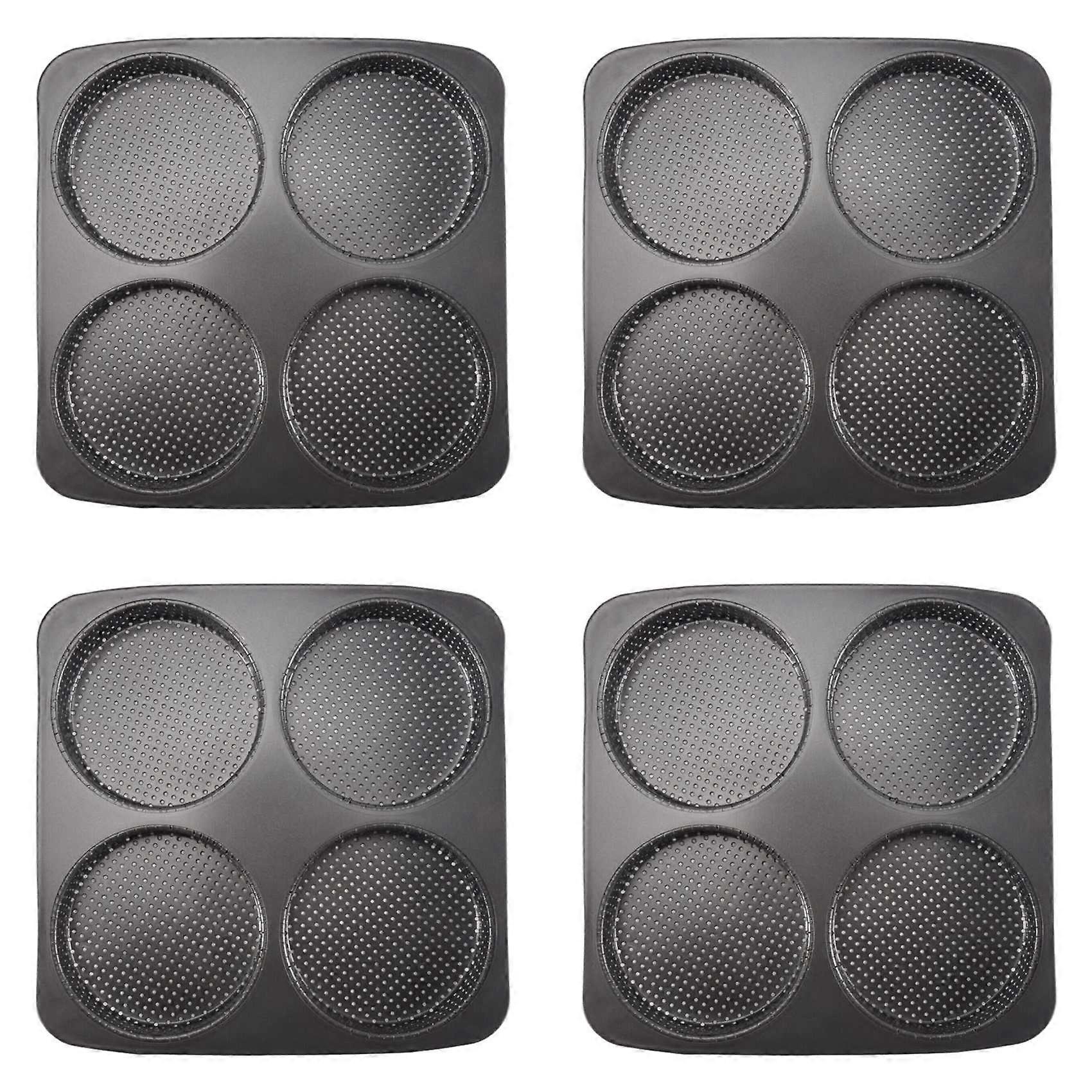 4X Hamburger Bun Pan, 5 Inch Non-Stick Carbon Steel Hamburger Mold, 4 Cup Big Baking Pan for Homemade Hamburger Buns