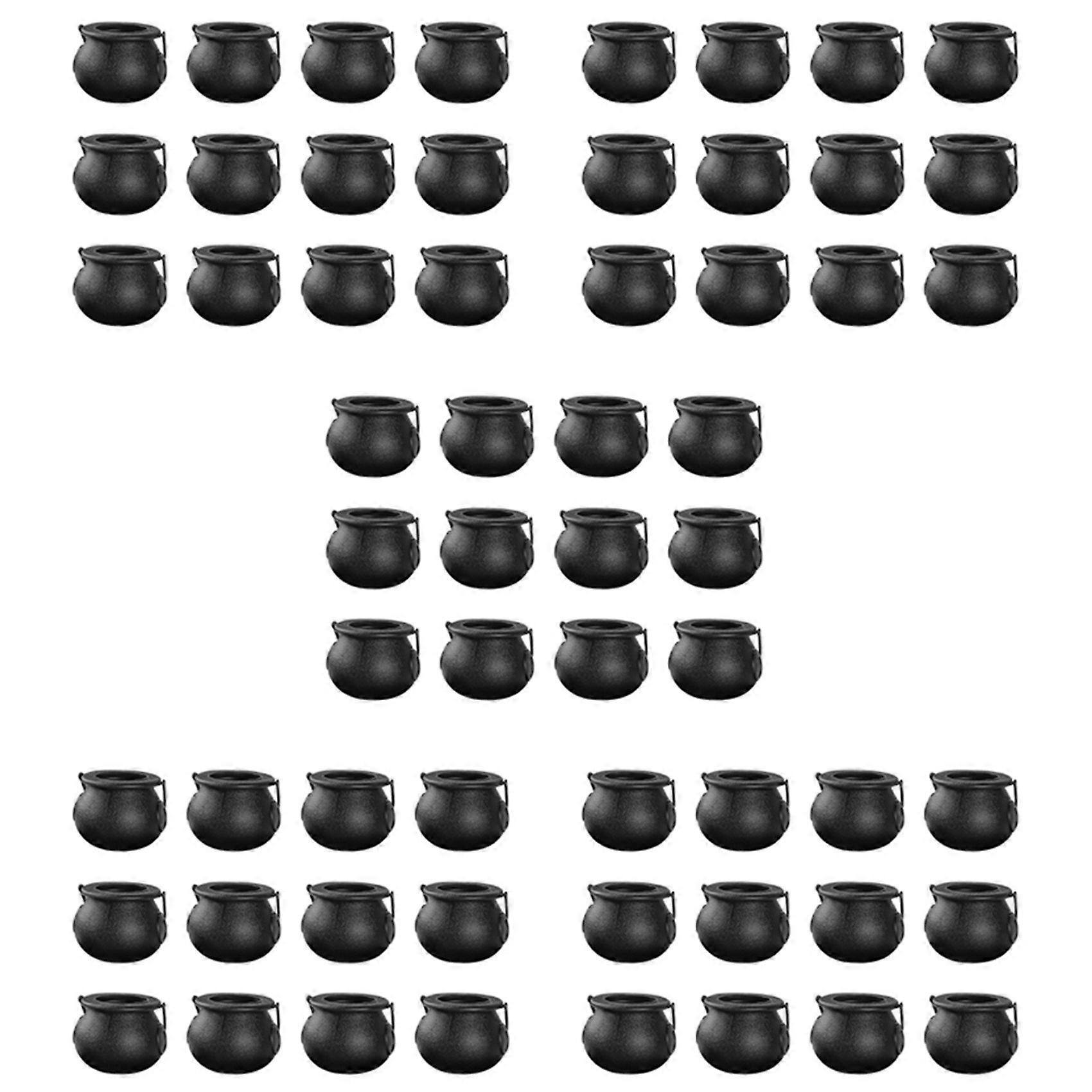 60Pcs Mini Black Cauldron with Handle Halloween Mini Witch Cauldron Halloween Pot Candy Holder for Halloween