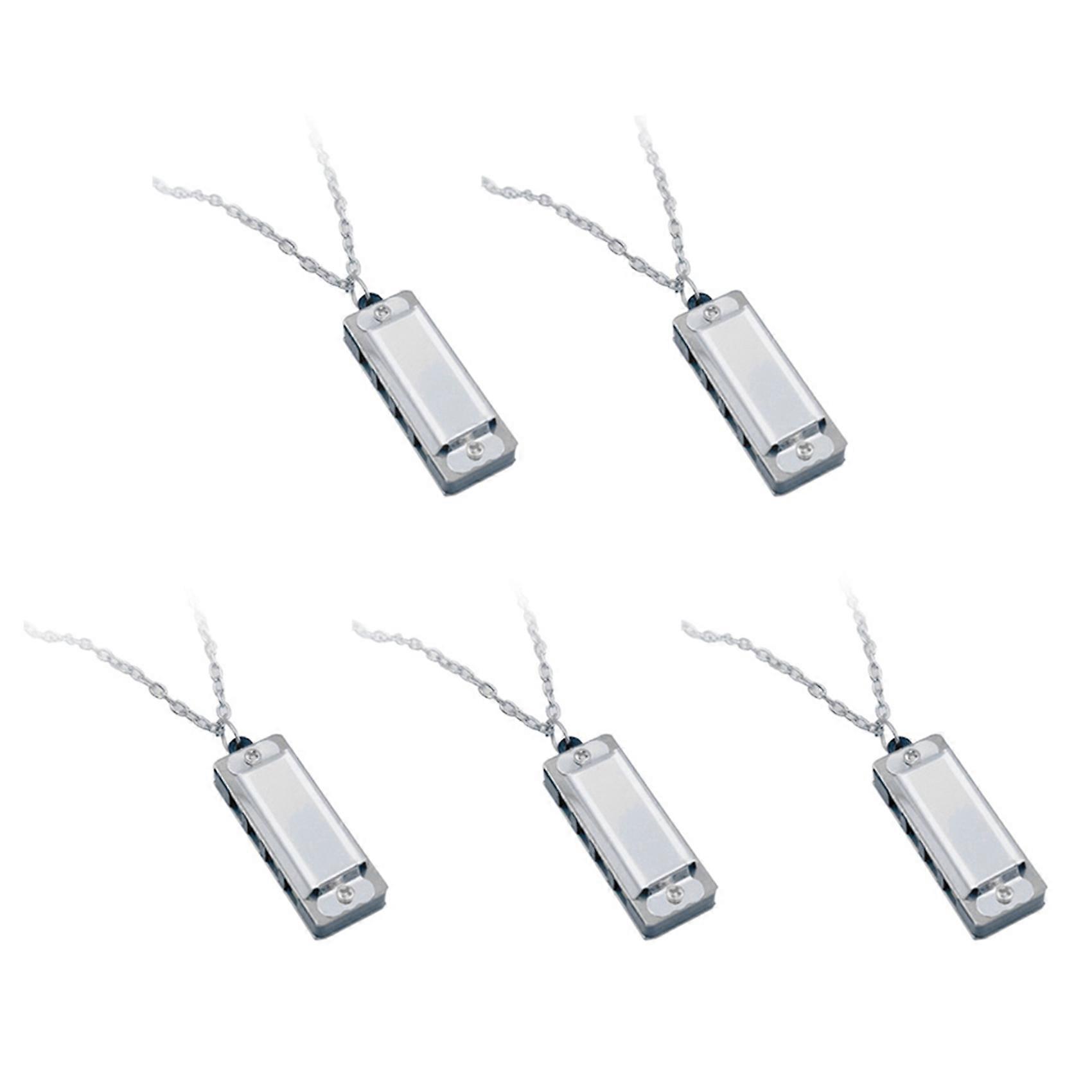 5X Mini Harmonica Necklace 4 Hole 8 Tone Harmonica Portable Musical Instrument for Children and Beginners