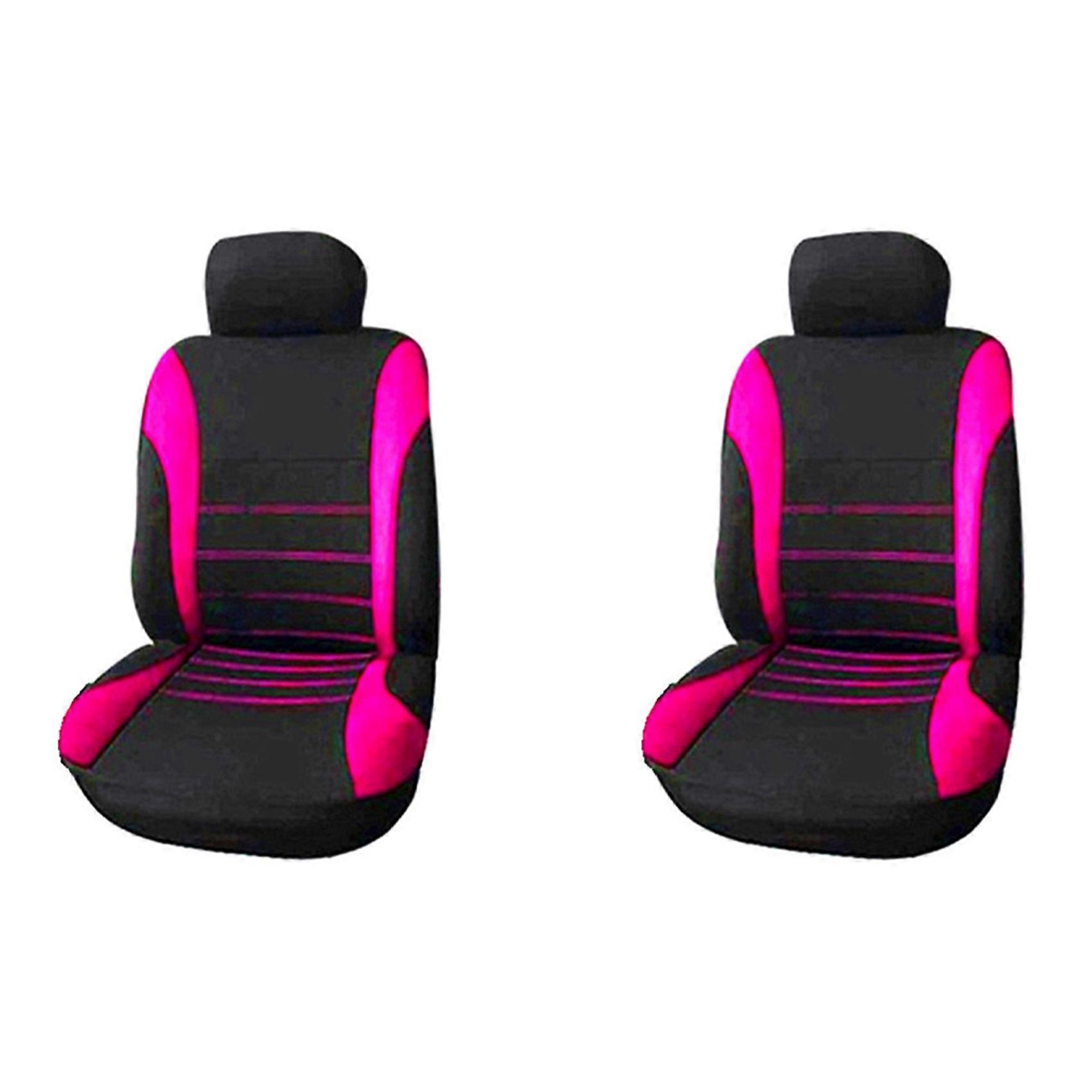 Front Car Seat Covers Front Airbag Ready Sport Bucket Seat Cover, 4-Piece Set Automobiles Seat Covers (Black + Rose)