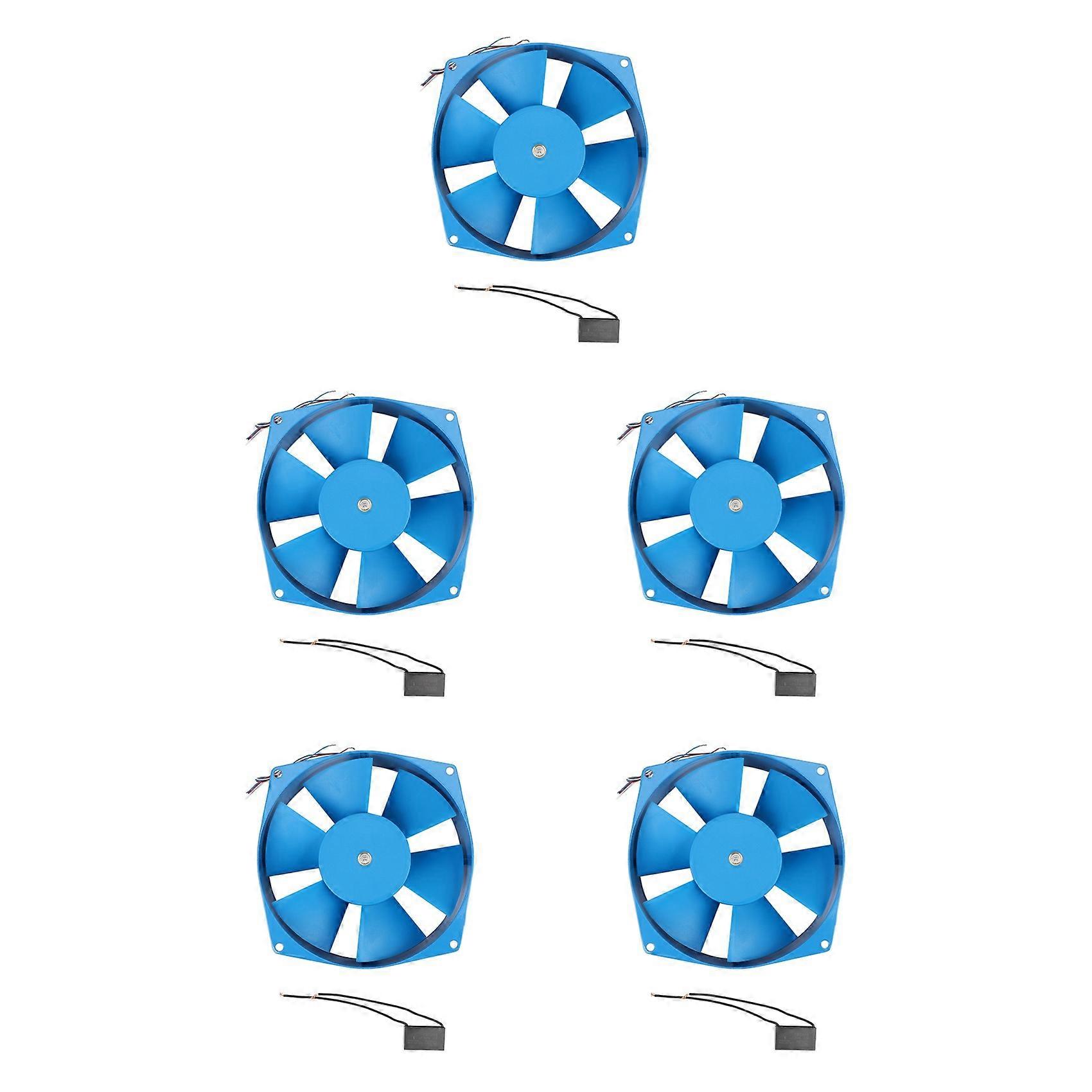 Features: The product consists of a single-phase capacitor-operated asynchronous motor, a single-flange cylindrical casing and vanes. Large air volume, low vibration and low noise color: blue Material: Aluminum + plastic product description: Name: Small power frequency axial flow fan Model: 200FZY2-D Voltage: AC220V Current: 0.3A Power: 65 (W) Frequency: 50HZ Speed: 2600 (R / min) Size: 210 x 210 x 71mm Bearing: Ball bearing Coil: Copper core wire Wiring method: lead type (line length tens of CM) three lines Frame: Aluminum alloy die-casting corrosion resistance, blue blister paint anti-corrosion treatment Wind leaf: plastic Ambient temperature (°C): -10°C-50°C Package Contents:5 x Axial fan