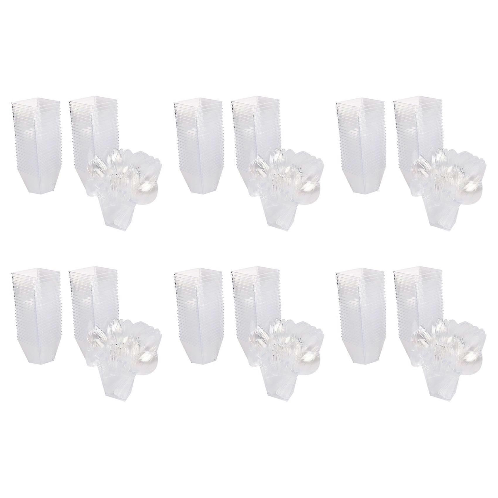 Pack of 300 Dessert Cups with Spoons, 60Ml Dessert Bowls Set, DIY Plastic Dessert Cups, Reusable Trapezoid Cups Set