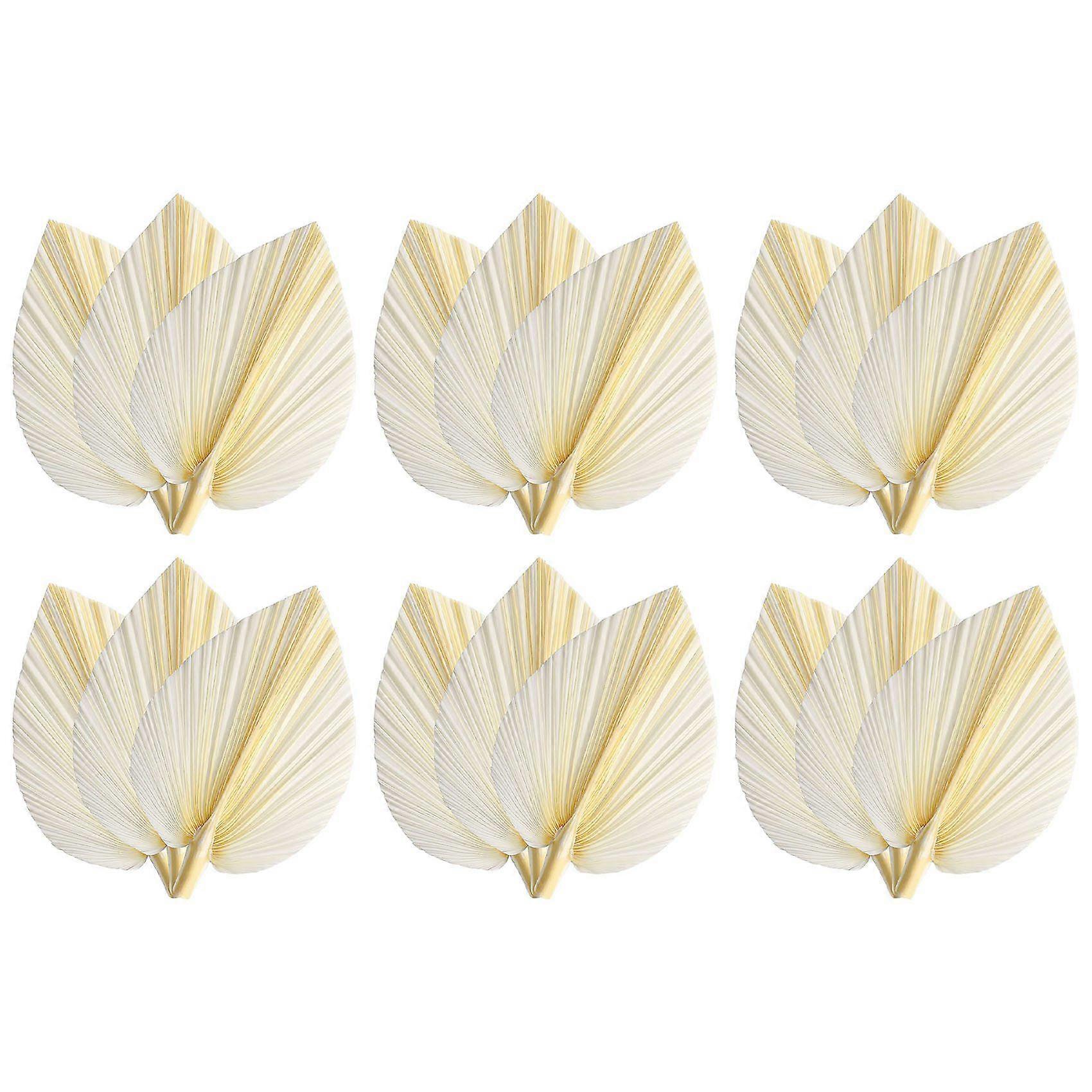 1. ABOUT YOUR PACKAGE: 18 Large Premium Pieces of Dried Palm Leaves in a beautiful white/cream color. The size of one palm leaf is approx. 11.02 inch x 19.29 inch (length including stem). The palm is extra-large, it can be cut and styled according to your wishes. This package also includes a free ebook with decor ideas. 2. MODERN HOME DÉCOR: With these premium naturally dried palm leaves you can add fresh tropical and very modern boho decor vibes to your home. The dried palm spears can be used as table centerpiece, hand fans, quinceañera, birthdays, themed parties, stage decorations, baby showers, candy tables or cake toppings. They add a subtle touch of elegance to your flower arrangement. Tip: It is also a perfect gift idea. 3. NATURAL & ORGANIC: The leaves could vary in shape and color slightly, as each of them is 100% handmade by professionals with love and care. The organic palm leaves are air dried, colored, and cut in a beautiful spear shape. You can also use scissors to trim according to your own ideas. 4. CONVENIENT & EASY: Dried palm leaves will last for years and don't require any watering or maintenance and hold up wonderfully over time. Very convenient for any décor lover. size: 40 x 28cm Material: palm leaves colour: White Package Contents: 18 x palm leaves
