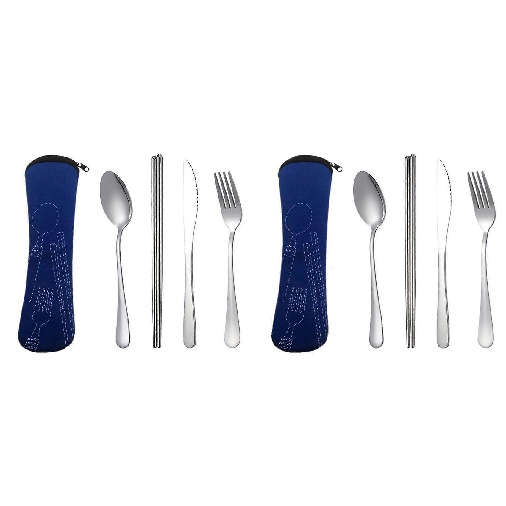 with high quality Stainless Steel Travel Cutlery set made of high quality stainless steel Modern design, reasonable price, good quality Cutlery kept clean and compactly stored in stylish, washable bag Colour:Dark Blue Material:Stainless steel Package Contents: 2 x Knife 2 x Spoon 4 x Chopsticks 2 x Fork 2 x Bag