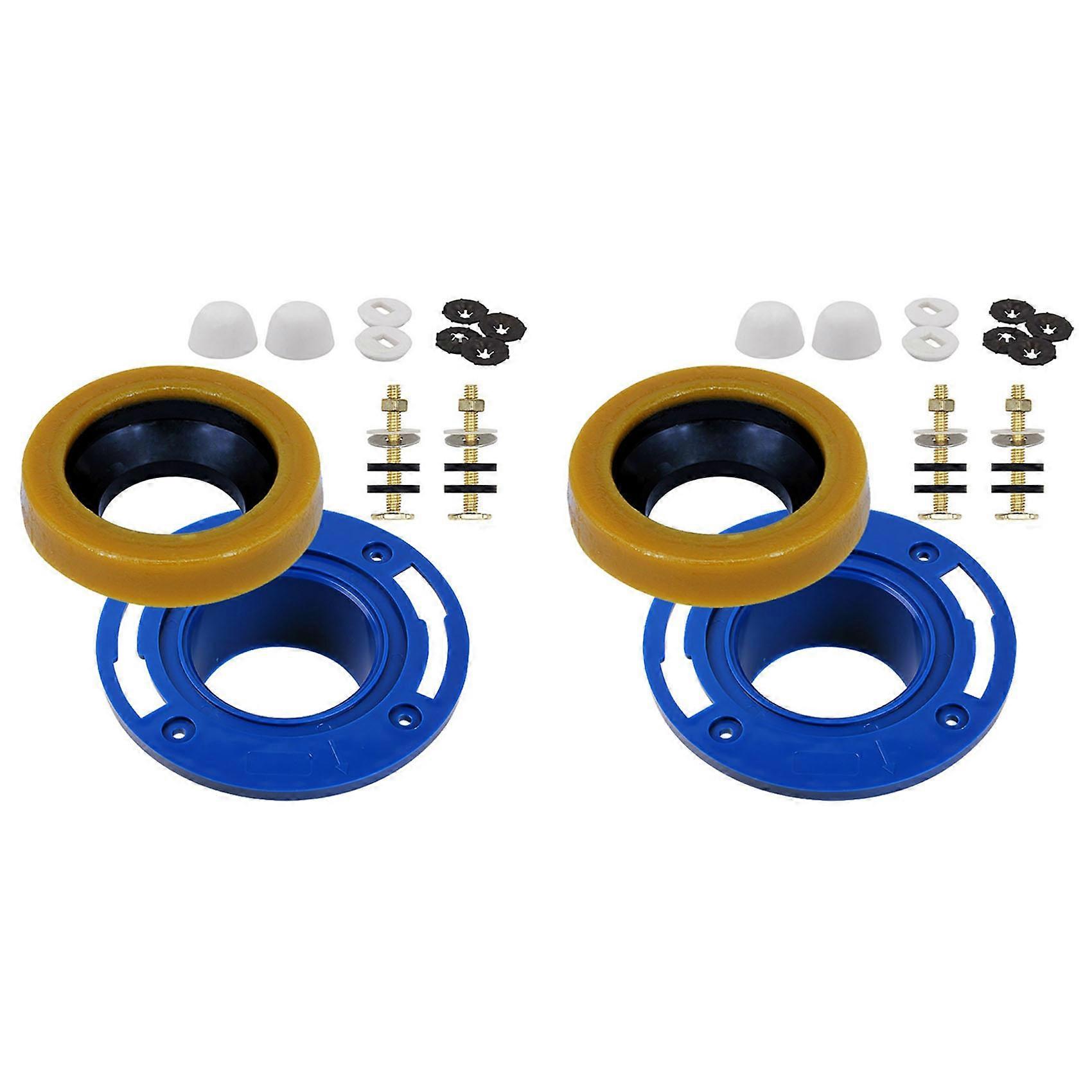 2X Toilet Flange with Wax Ring for Toilets Replacement Kit Includes Bolts PVC Toilet Flange Repair Kit