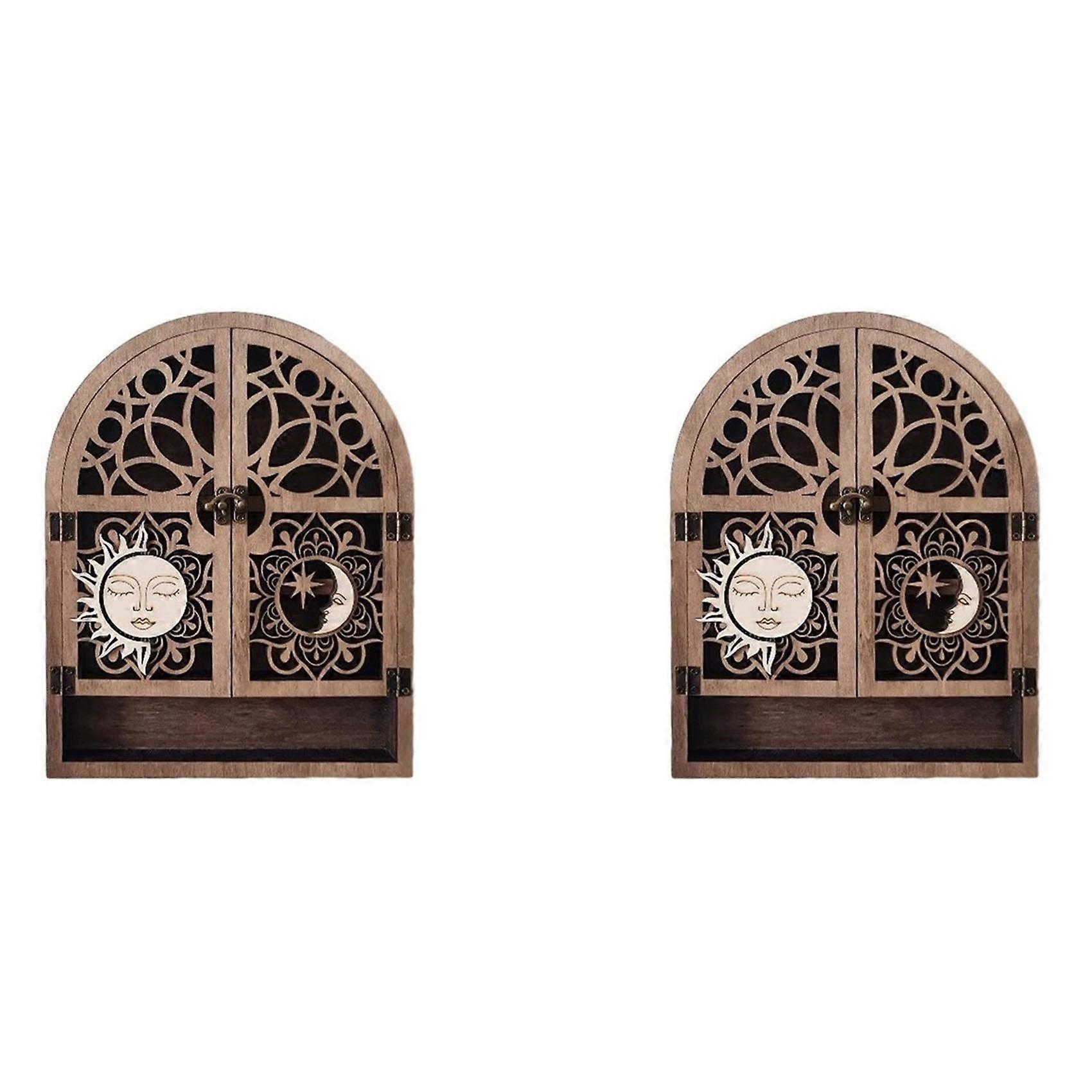2X Sun Moon Crystal Display Stand 4 Shelves Natural Wooden Shelf Gothic Witchy Crystal Display Case for Living Room