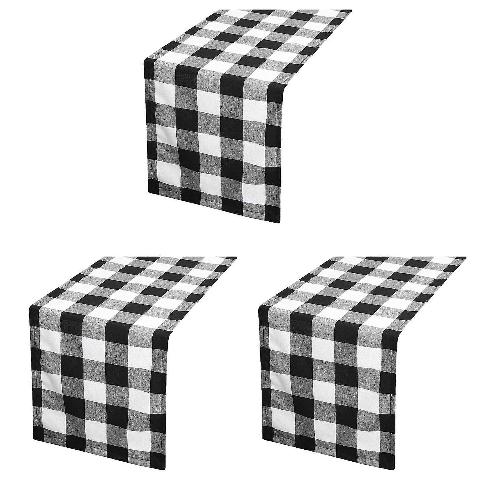 3X Buffalo Check 13X70Inch Black and White Plaid Table Runner,Dinner Table Runners for Party Christmas Events Home Decor