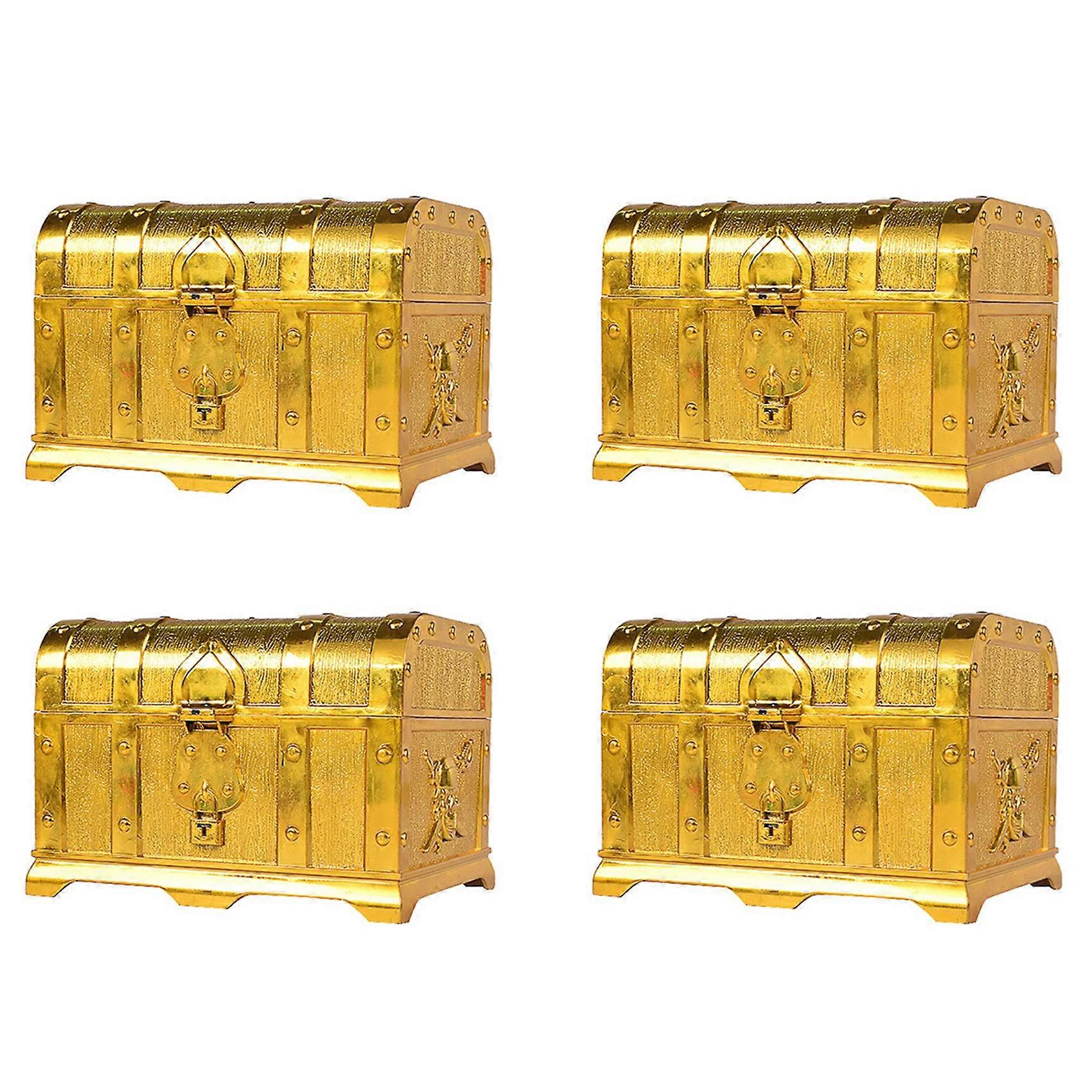 4X Pirate Treasure Chest Decorative Treasure Chest Keepsake Jewelry Box Plastic Toy Large Size Electroplating Gold