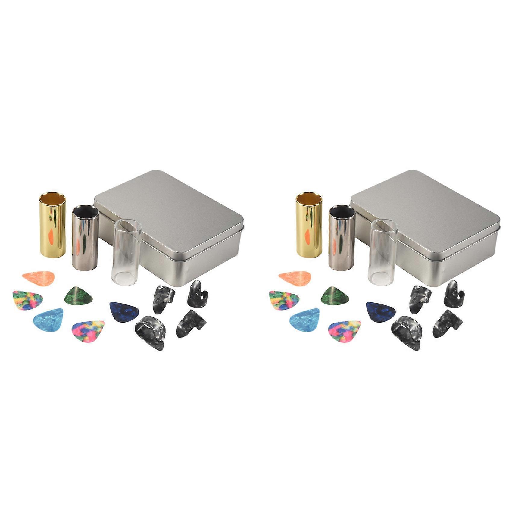 Guitar Slide Set of 2 Glass Slide, 2 Steel Slide and 2 Brass Guitar Slide, 12 Pcs Guitar Picks and 8 Finger Picks