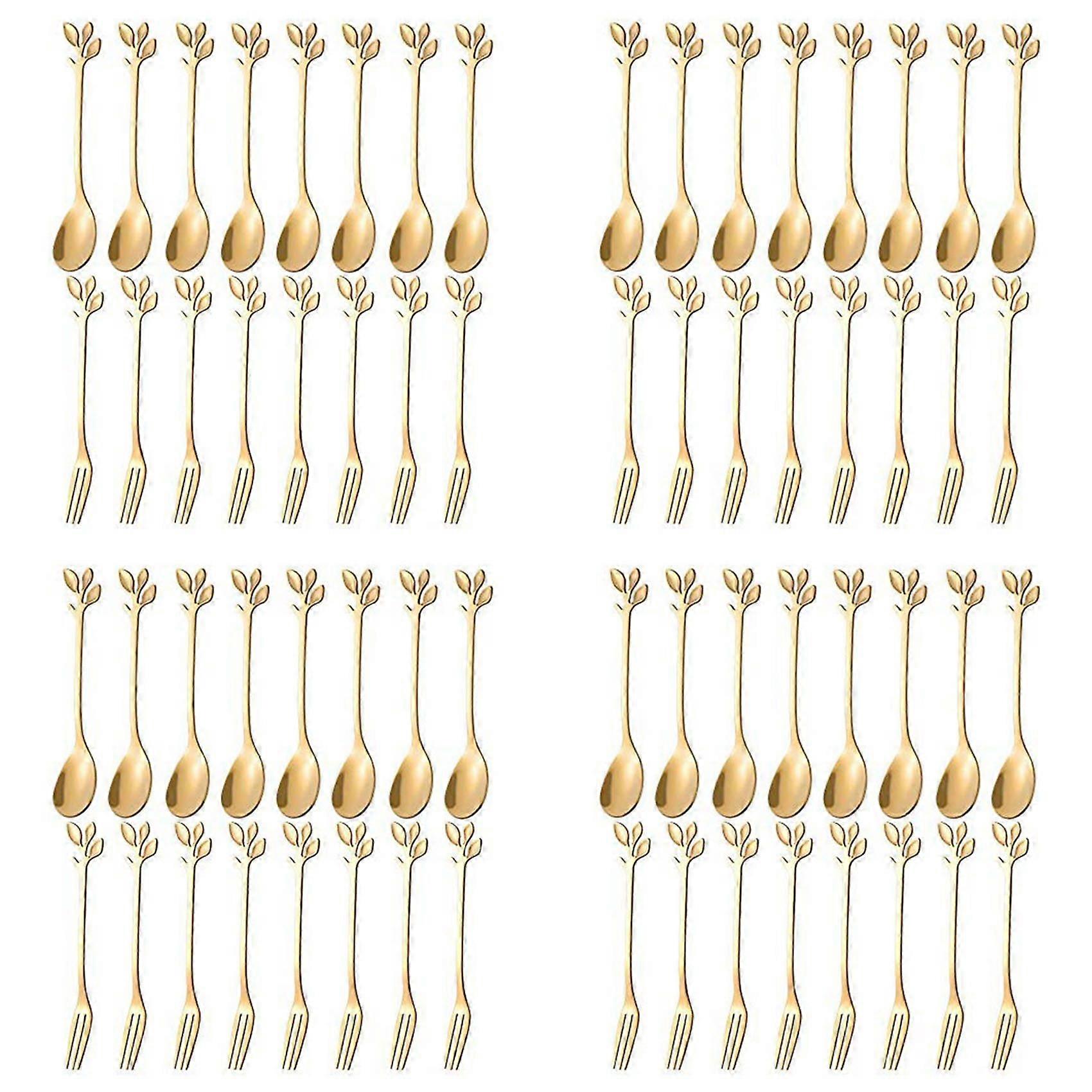80PCS Dessert Spoon and Fork Set Cake Fork Coffee Spoon Creative Fruit Fork Stainless Steel -Gold