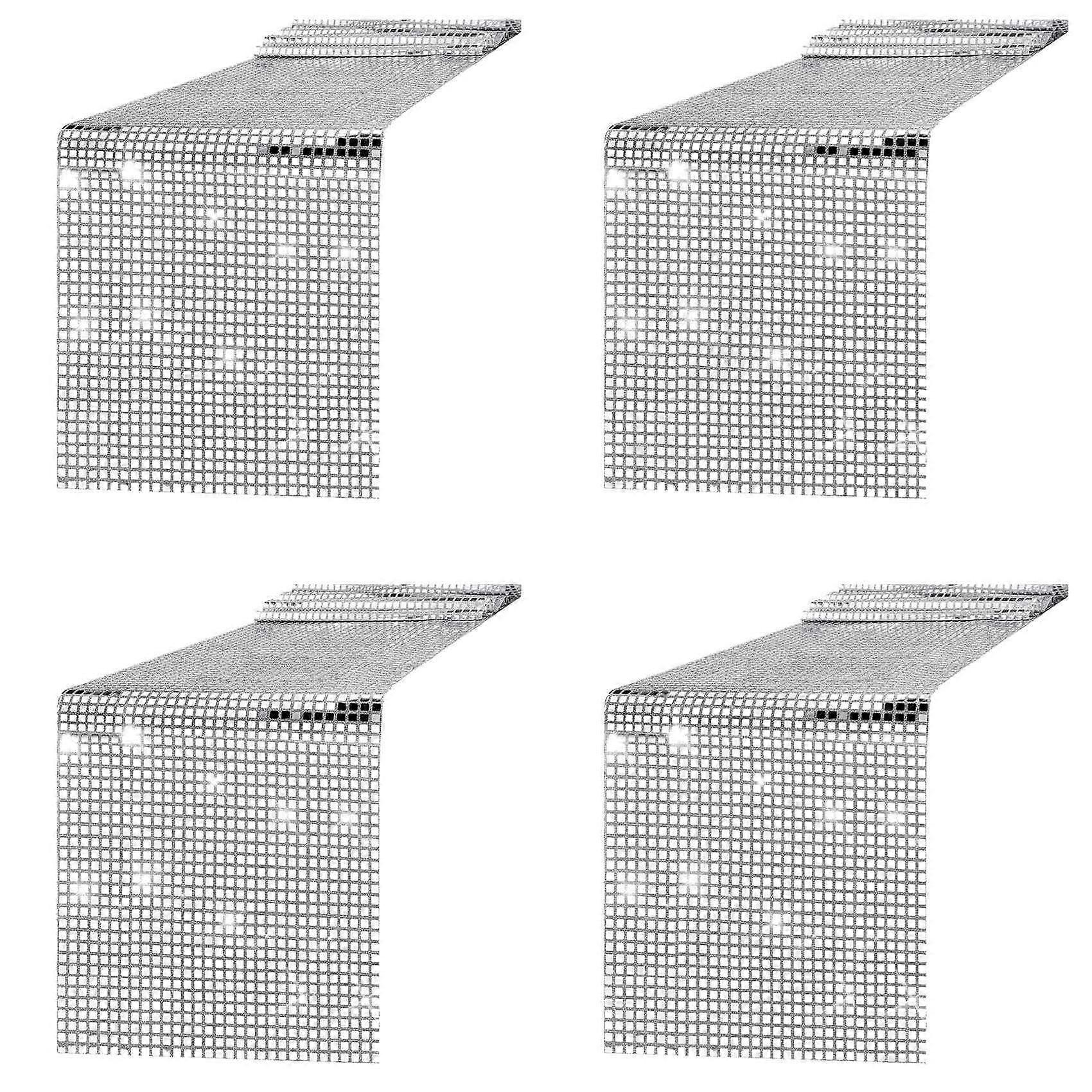 4X Disco Party Table Runner Mirror Silver Foil Table Runner Glitter Metallic Table Cover for Disco Dance Party Wedding