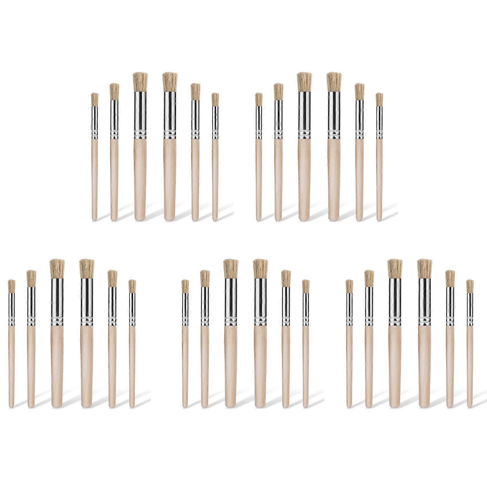 30Pcs Wooden Stencil Brushes for Painting on Wood, Natural Bristle Stencil Brush Art Brushes for Acrylic Paint,(3 Sizes)