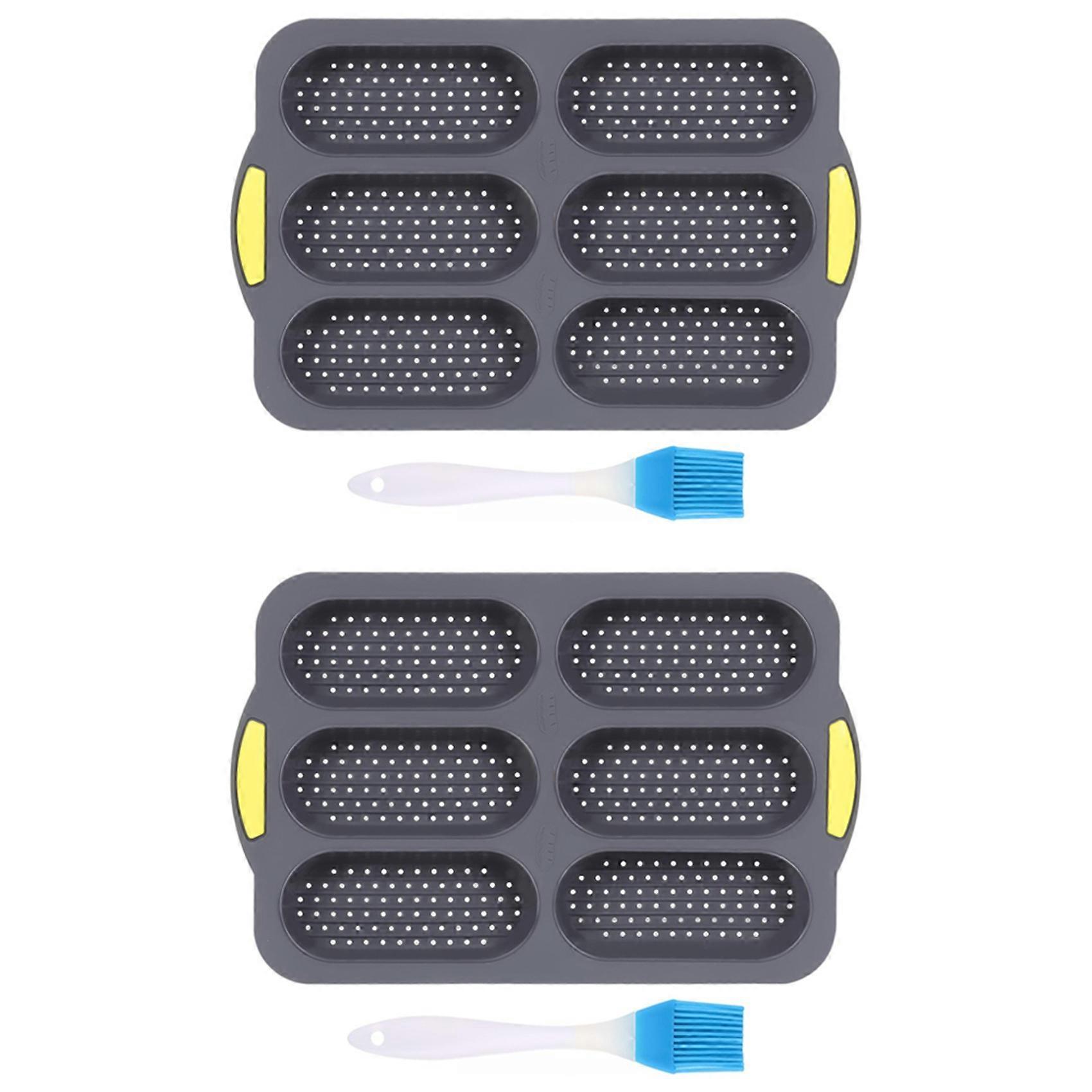 2X Silicone Pan, Hot Dog Bun Pan with Oil Brush,6 Gutter Nonstick French Bread Bake Mold, French Bread Loaf Pan