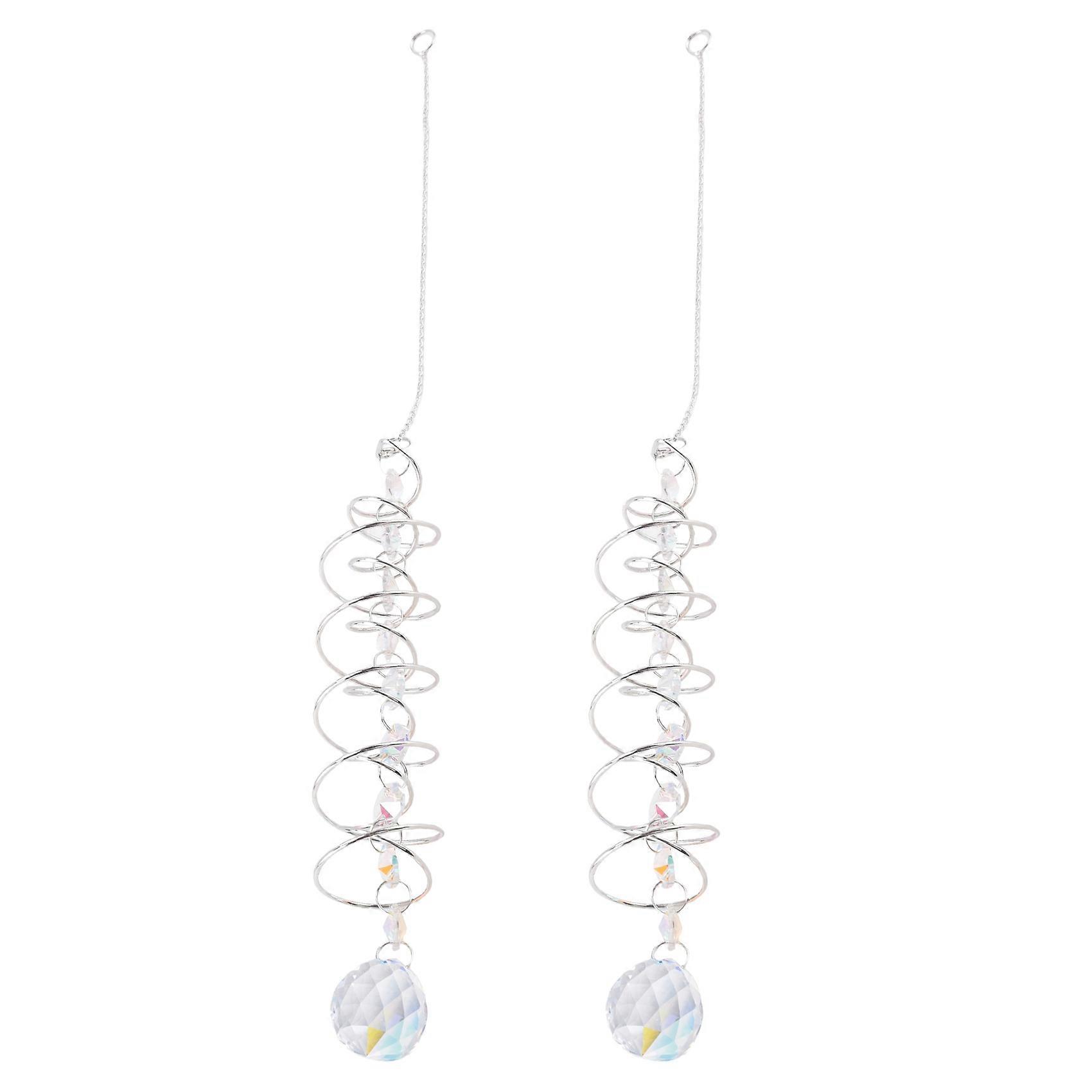 2pcs 17.7Inch Gazing Ball Spiral Tail,Decorative Wind Spinner Sun Catcher,Glass Crystals for Indoor Outdoor Decoration
