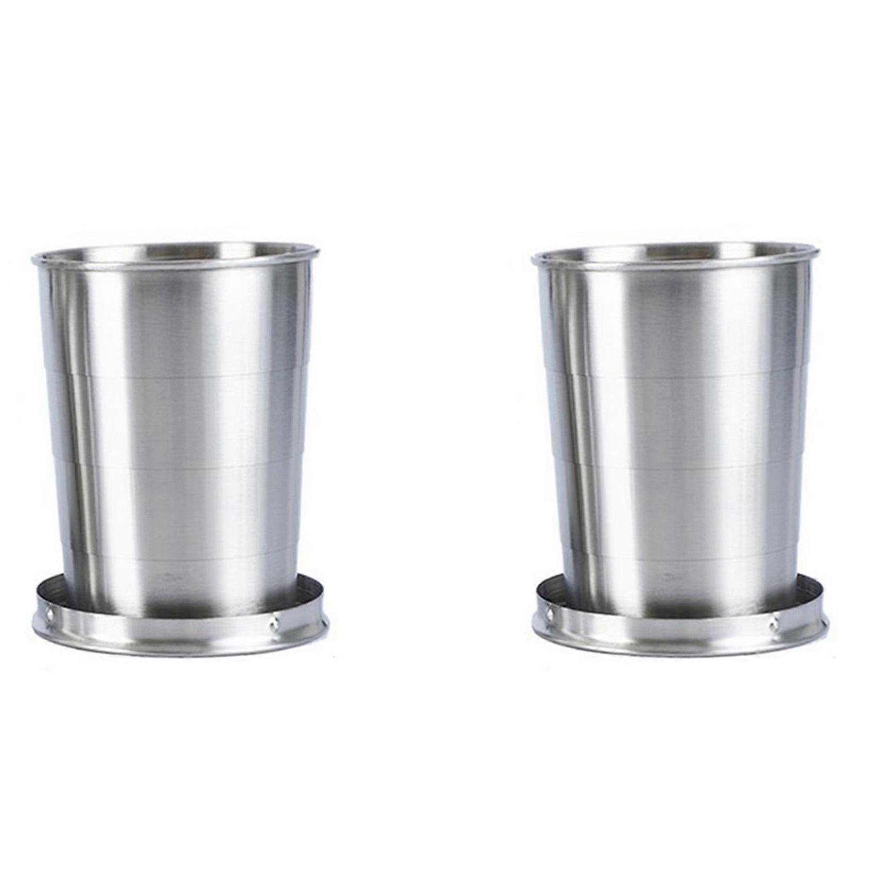 2X Portable Outdoor Travel Folding Foldable Cup Telescopic Mug Portable Stainless Steel Foldable Water Cup 250ML