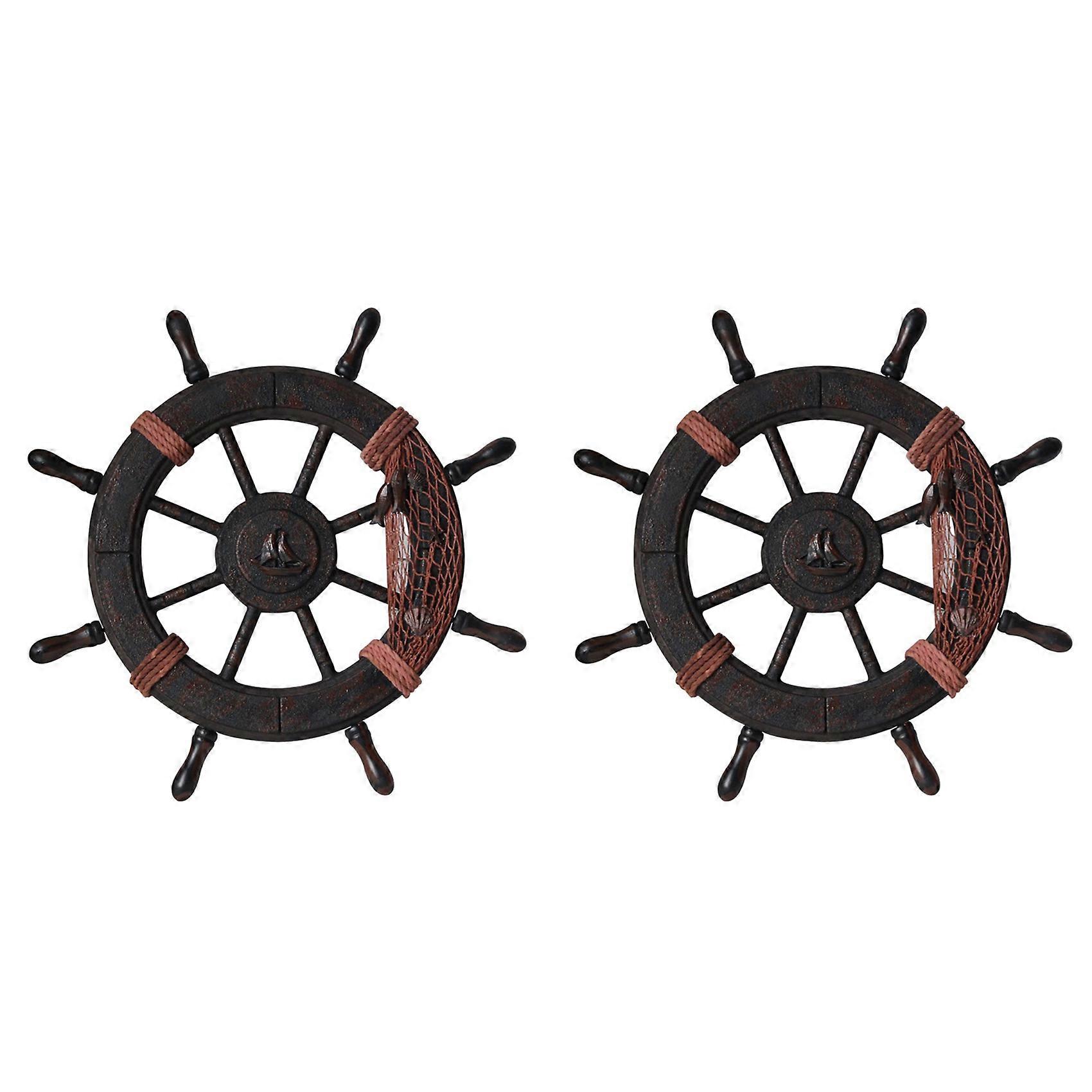 2X Mediterranean Style Nautical Wooden Boat Ship Wheel Wooden Rudder Model Rudder Wooden Retro Ship Wheel