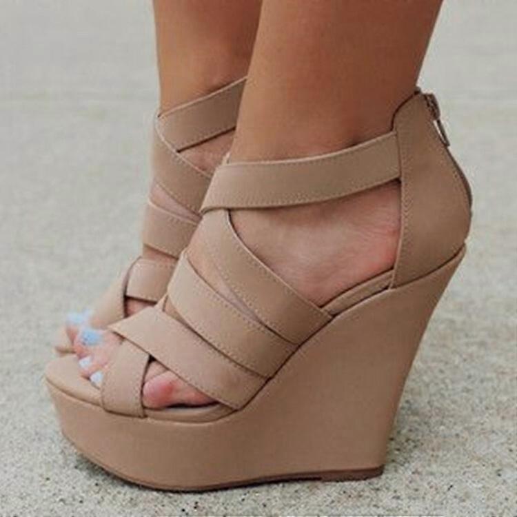 New Fashion Women Sandals Platform Wedge Straps Brown Shoes Woman Plus Size 5-20