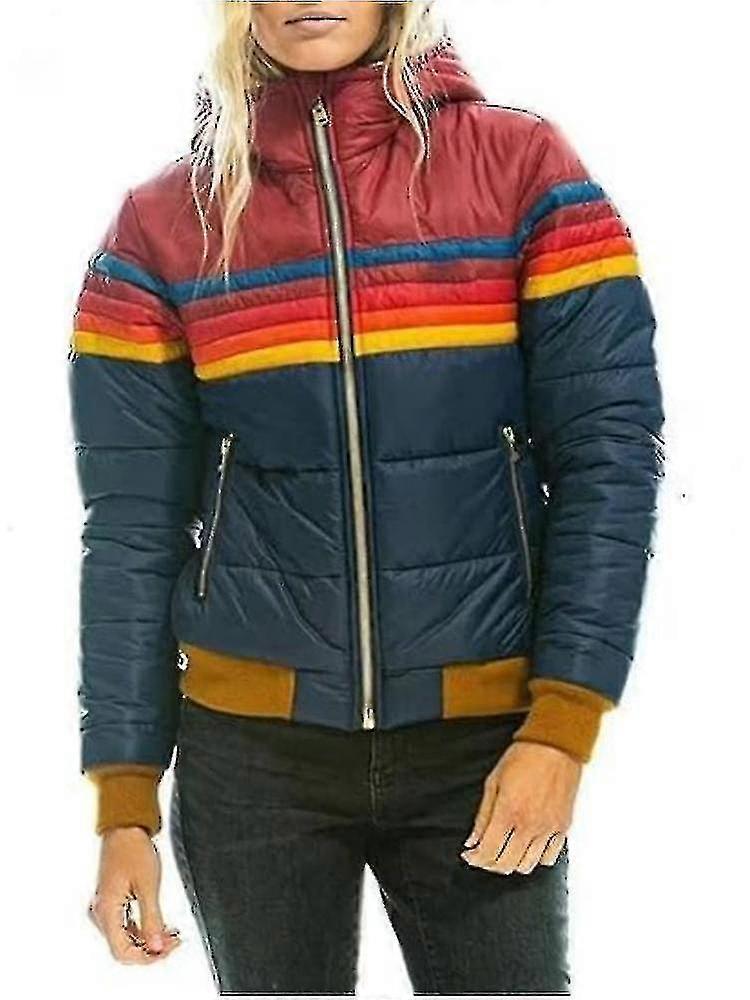 Striped Puffer Jacket for Women with Zip-Up Winter Hood