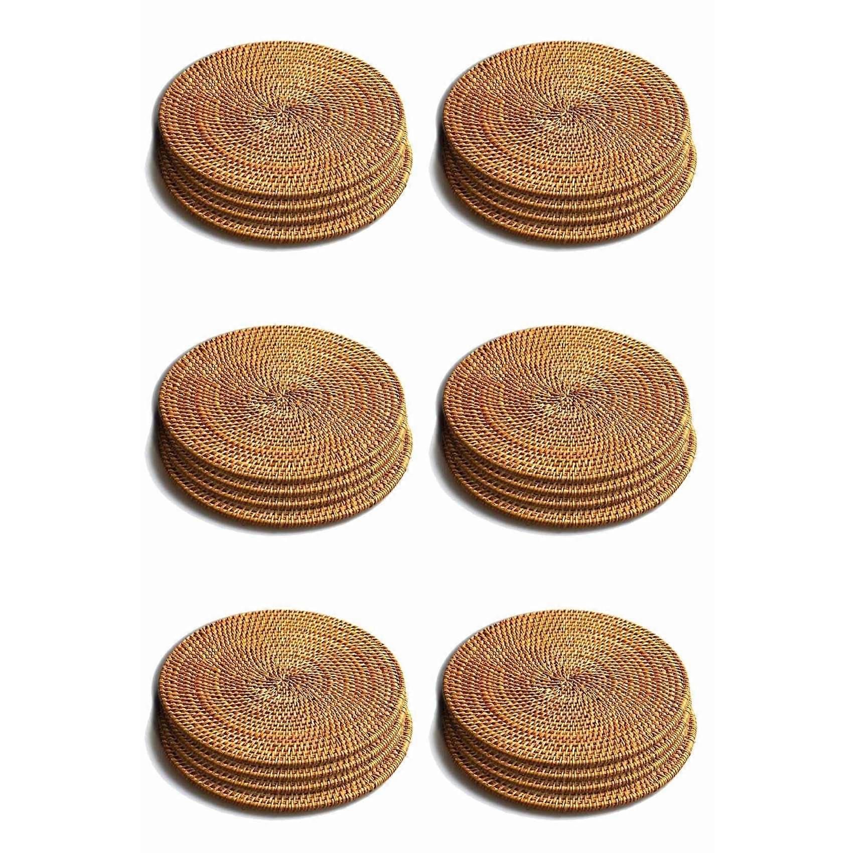 You can place beer mugs, coffee cups, tea cups, and cold drinks on these coasters. Not only is it beautiful, but it also isolates and effectively captures condensation from cold drinks, protecting your desktop, worktop, or other surface from stains or damage. These rattan coasters and round leather coasters are suitable for all families, hotels, restaurants and bars. They can also be used as exquisite mother's day or holiday gifts for loved ones. Beautiful decorations: can be used for party, year, birthday gift, christmas gift, halloween gift, for mom, dad, grandfather, grandmother, lovers, colleagues, valentine Surprise Valentine's Day gift for girlfriend or boyfriend. Does not fade or scratch-Stunning artwork that makes your coaster unique, does not fade or scratch, and leaves no stains or grease behind. They weigh very little and do not stick to the bottom of the cup when lifted. Scratch-resistant rattan roller coaster protects the table from scratches and abrasions. It also provides extra grip on the ground, firmly affixed to the table, and easily handles bumps and falls. colour:Photo Color Material:Rattan size:Diameter about: 18cm Package Contents: 24 x Placemat