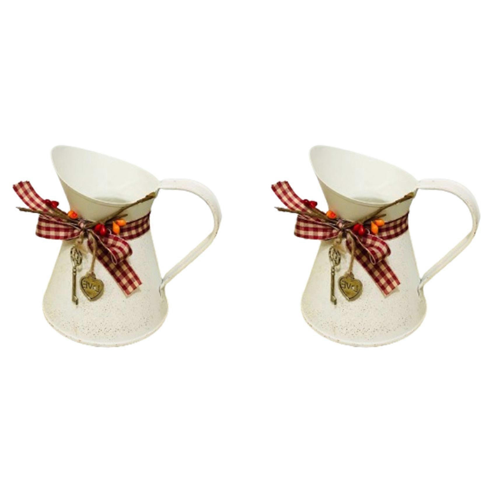 2X Flower Vase Bucket Bow Heart Pendant Can Farmhouse Rustic Jug for Centerpiecess Country Iron Pitcher Planter Jug-A