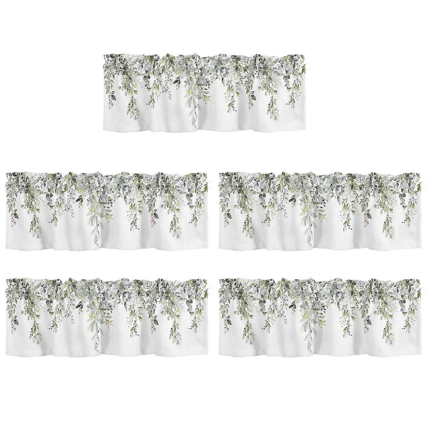 5X Sage Green Curtain Valance for Windows Watercolor Eucalyptus Leaf Rod Pocket Valance Window Treatments Plant Leaves