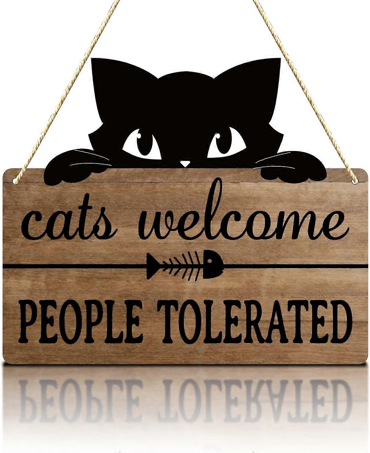 Hanging "Cats Welcome People Tolerated" Wall Art - Rustic Animal Decor, Office Sign, Great for Home, Gift for Cat Enthusiasts