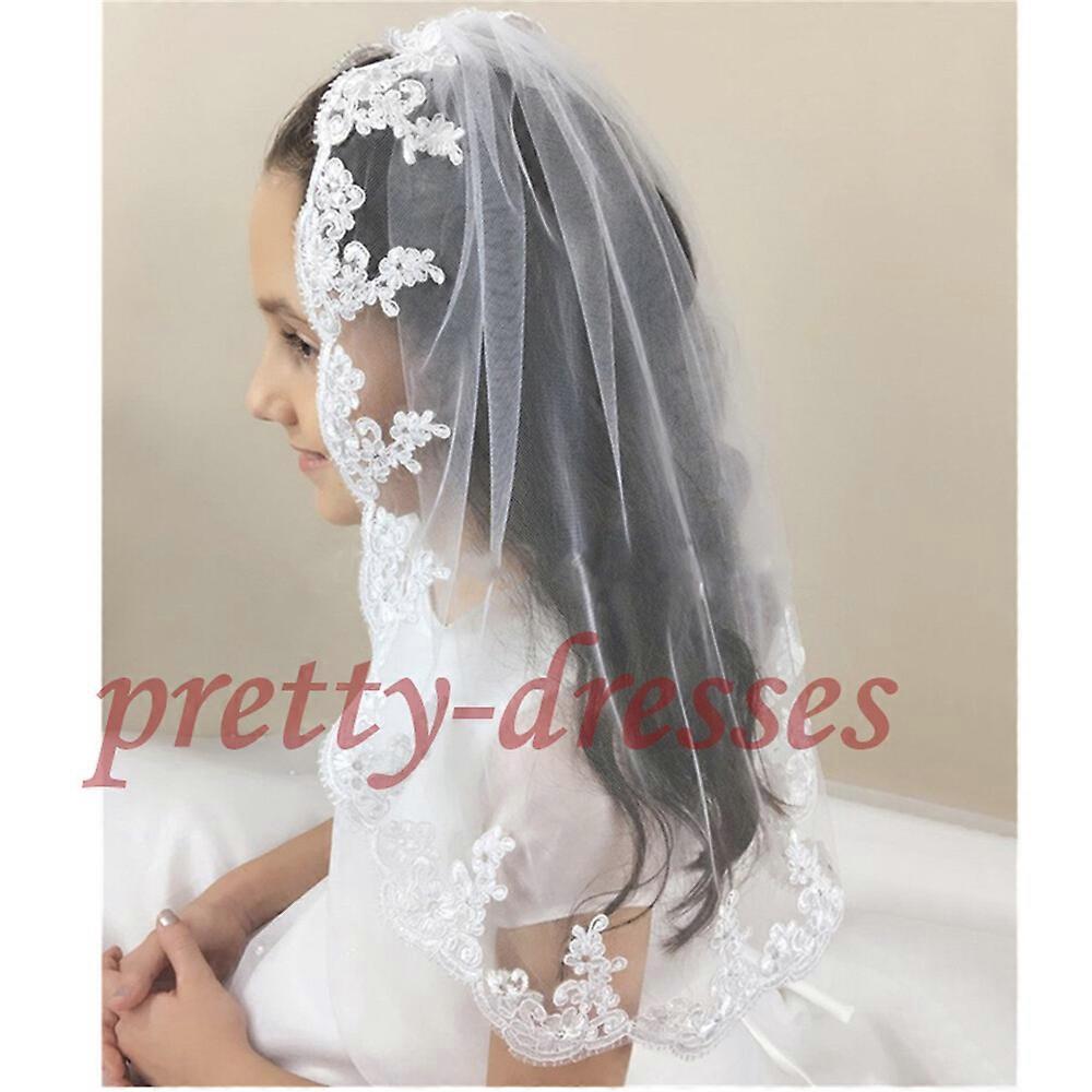 White Ivory Wedding Flower Girls First communion Veils with comb Appliques Child