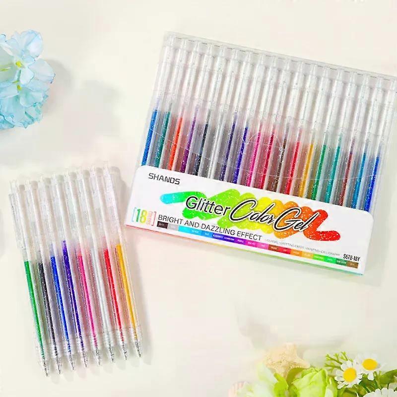 18 Colors Glitter Gel Pens Set 1.0mm Nib Colored Ink Art Drawing,Hand Account,Journaling,DIY School Office Stationery Supplies