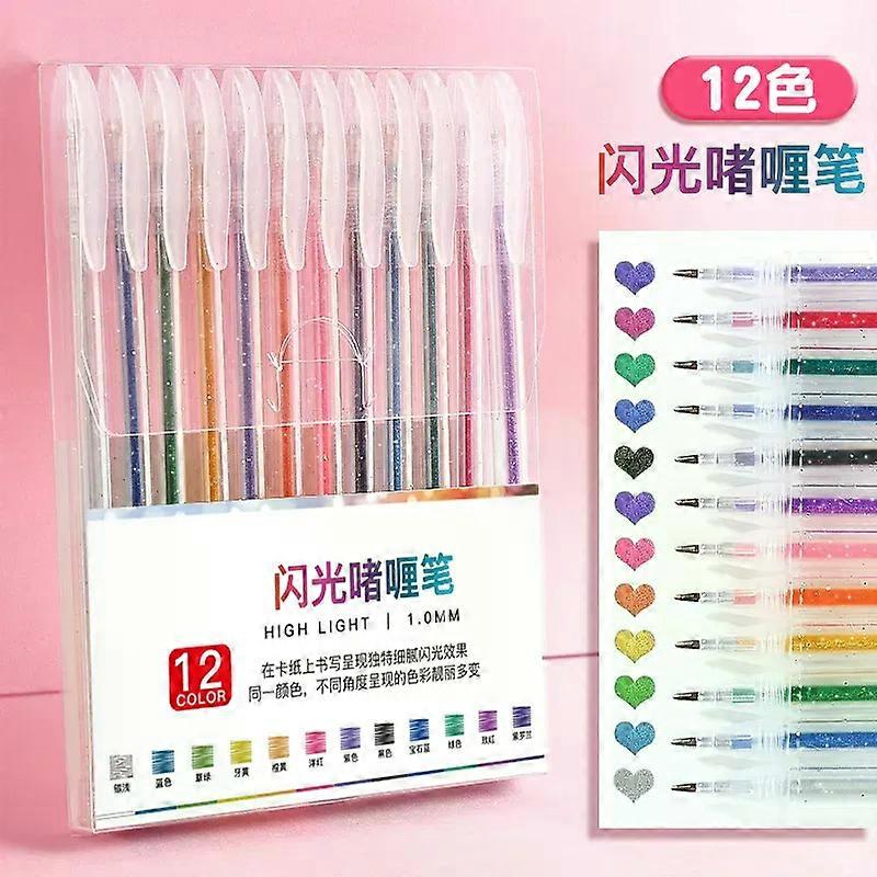 8/12/24/36 Colors Glitter Gel Pens Retractable and Uncap Type Writing Art Marker Coloring Drawing Office Student Stationery