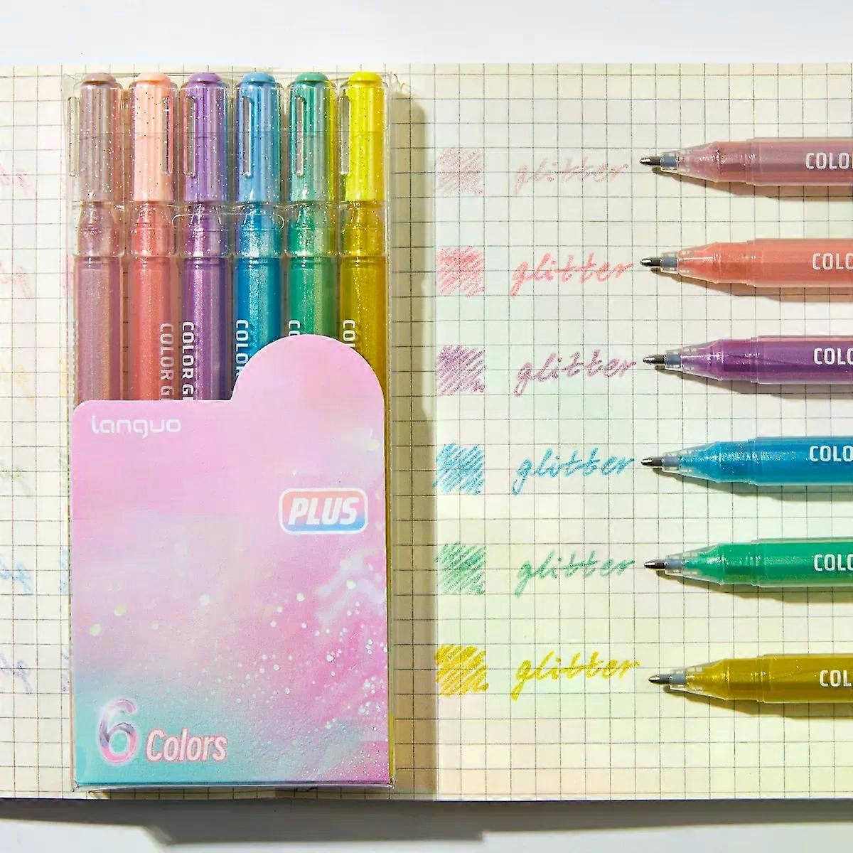 Glitter Gel Pen, 6 Counts/set Metallic Vibrant Sparkle Gel Pens, Colored Gel Pens for Adults DIY Birthday Cards