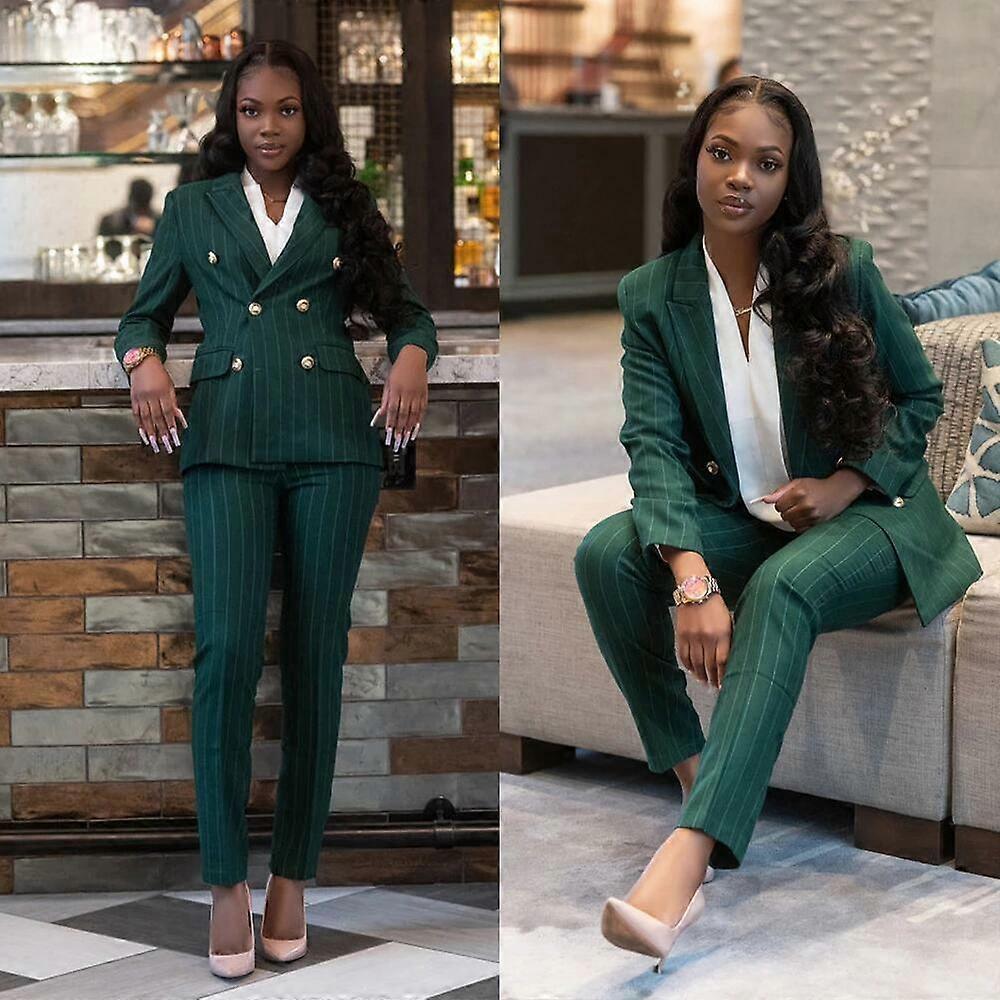 Green Striped Women's Suits Office Work Wear Ladies 2 Pieces Outfits Party Prom