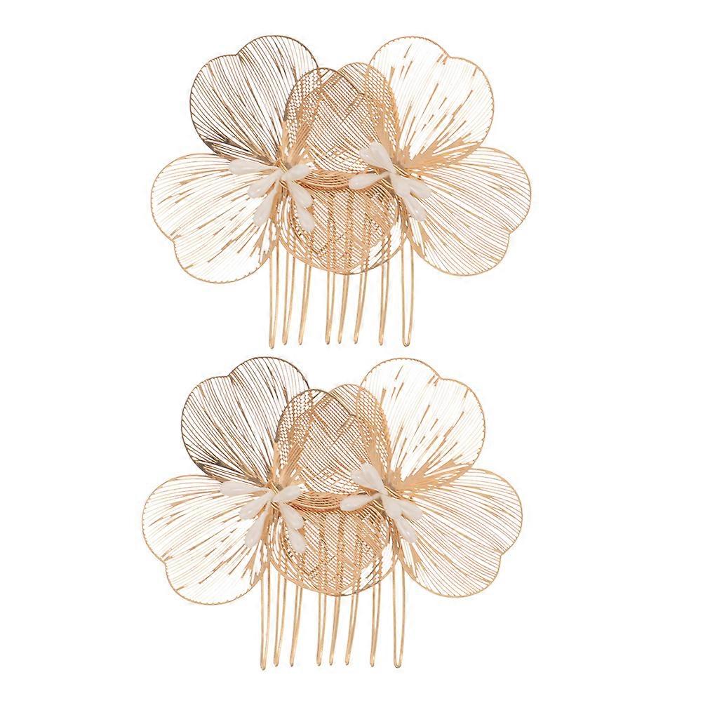 Golden Flower Hair Comb for Bridal Headpiece 2Pcs Elegant Wedding Hairpins