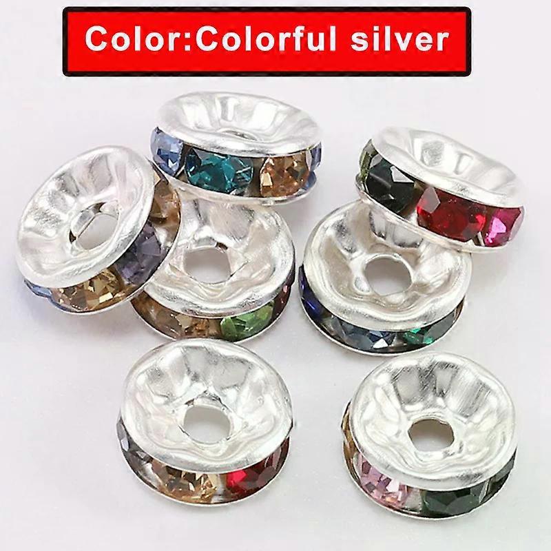 100Pcs Rhinestone Spacer Beads Rondelle Loose Bead 6/8/10mm Silver Plated Czech Crystal Rhinestone for Bracelet JewelryMaking