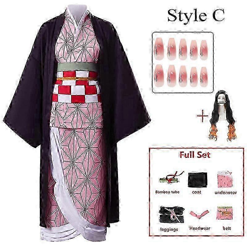 Cosplay Costume Set for Anime Kamado Nezuko with Kimono, Wig and Uniform