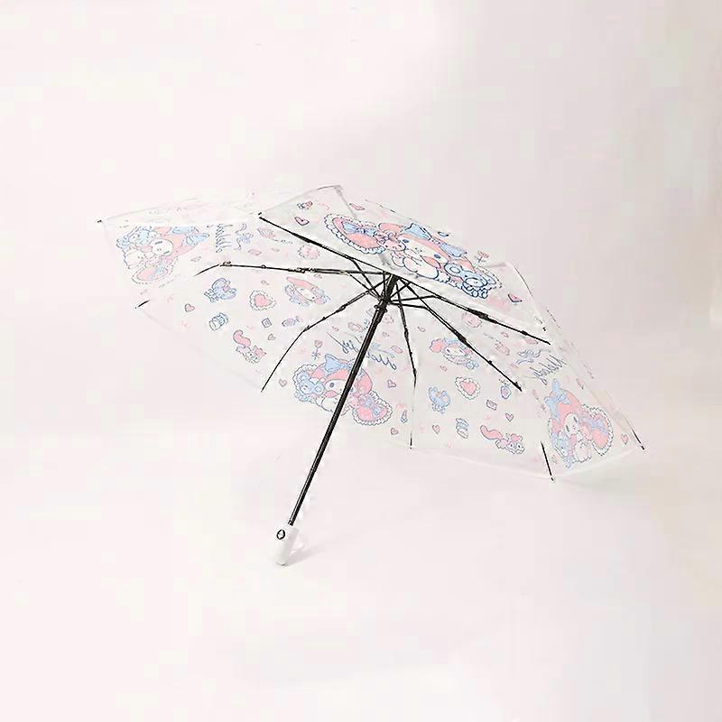 Kuromi Anime Cartoon Transparent Umbrella Fully Automatic Opening and Closing Umbrella Cute Folding Student Thick Umbrella
