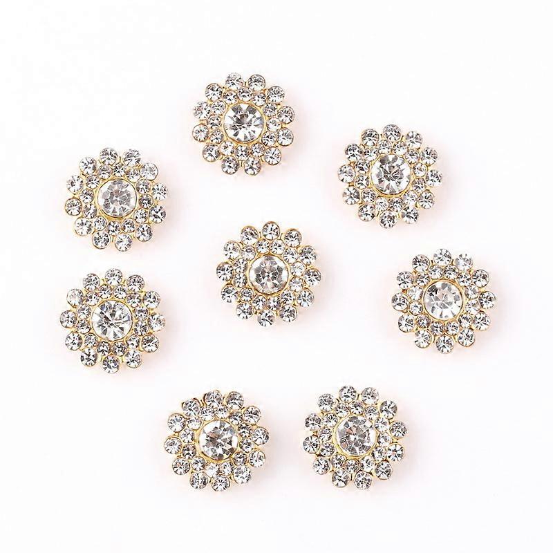 14mm Flower-Shaped round glass crystal rhinestones in Gold base flat back Sew on rhinestone beads diy trim