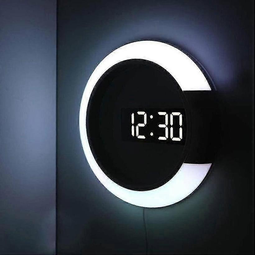 LED Wall Clock with Remote Control Digital Hollow Mirror Temperature Alarm Night Light