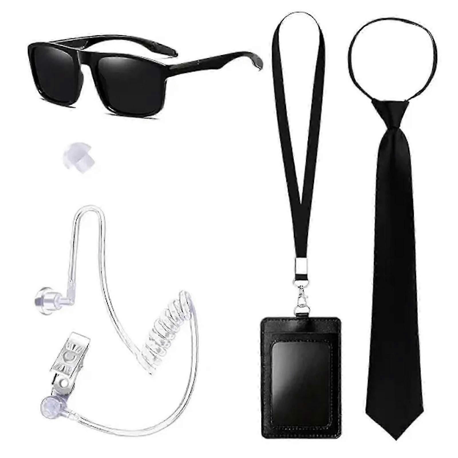 Halloween Spy Costume Kit for Adults With Tie, Glasses and Communication Earpiece