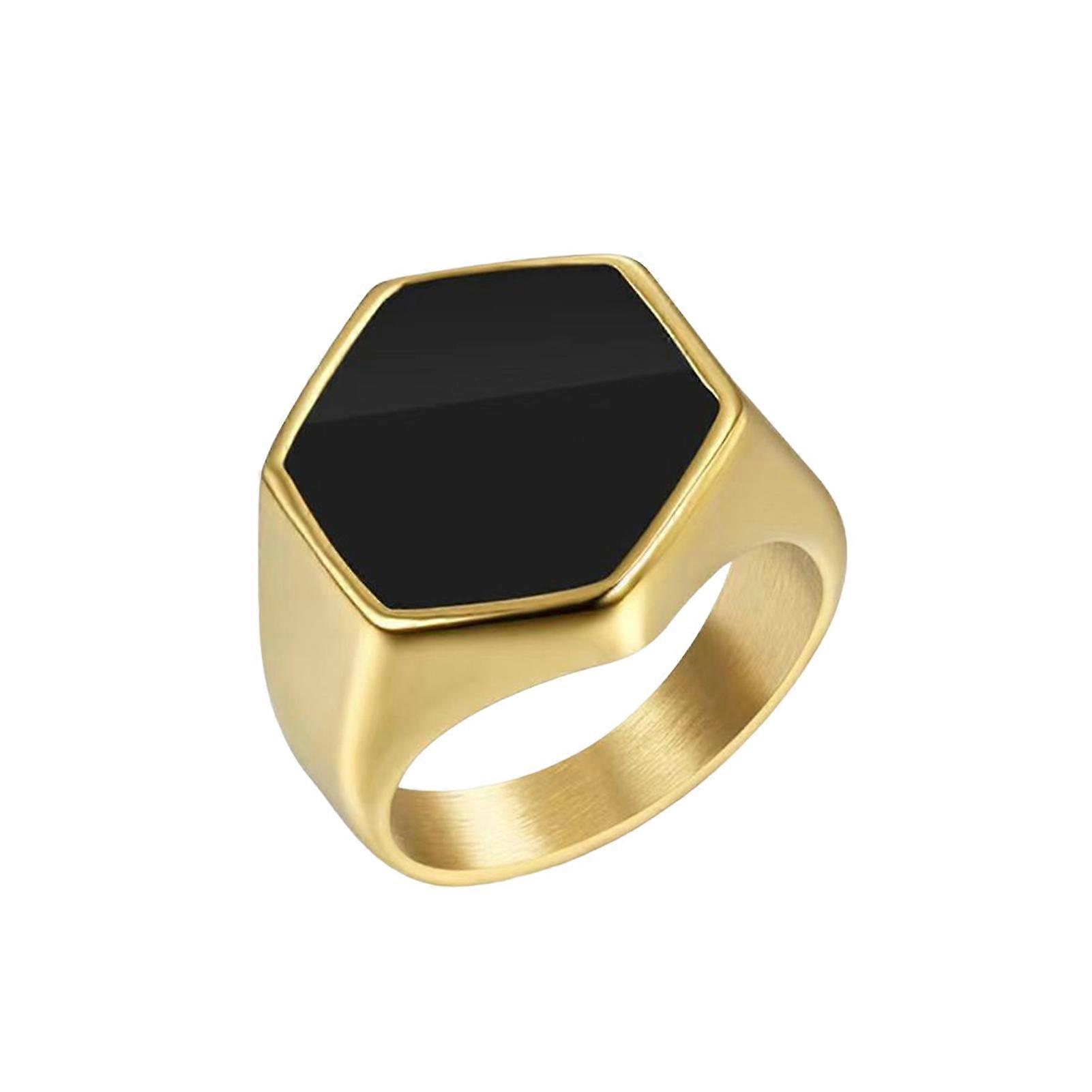Retro Ring Contrast Color Polished Alloy Hexagon Surface Simple Style Multi Sizes Anti-Rust