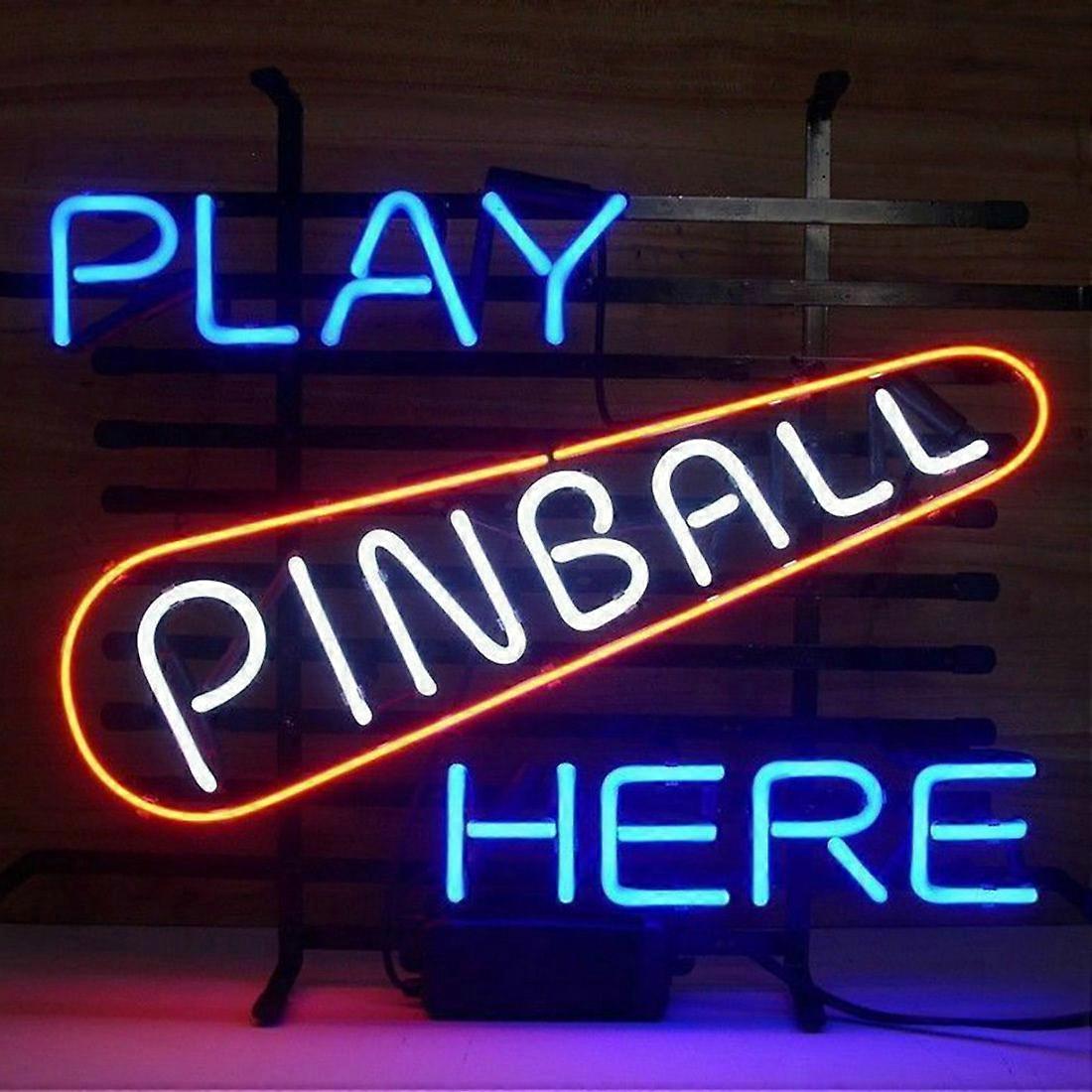 Play Pinball Here Real Glass Neon Sign - Vintage Arcade Game Room Wall Art for Bar & Man Cave Decor - 19"x15"