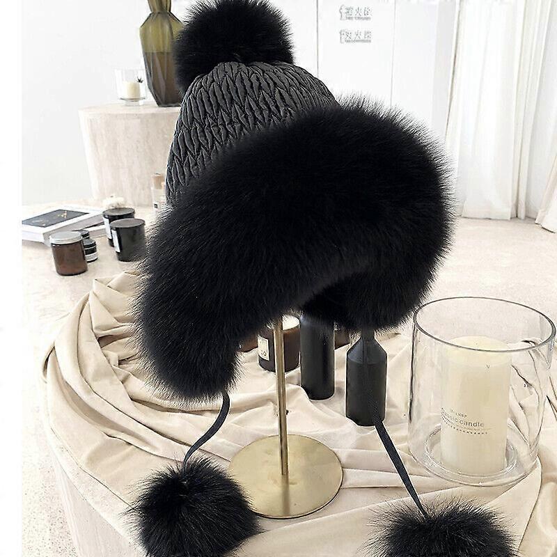 Real Fox Fur Hat Women Ear flaps Earmuffs Cap Winter Warm Beige Pink Black Grey