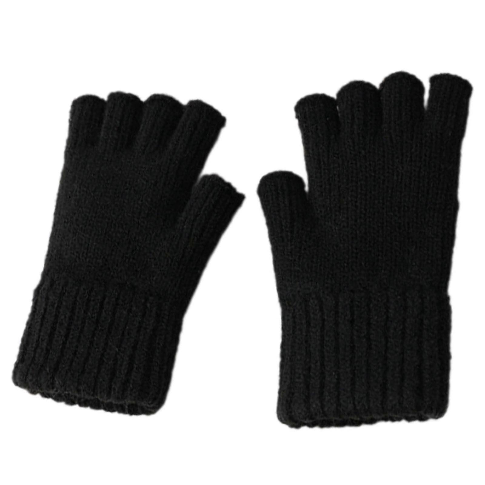 Winter Half Finger Gloves with Solid Color Warm and Windproof Hand Warmer Short Gloves for Office School Kids Daily Wear