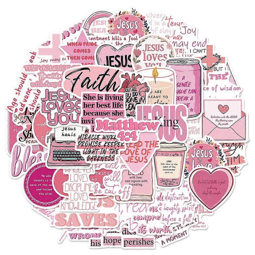 50PCS Pink Bible Jesus Cute Creative Waterproof Stickers DIY Luggage Notebook Speaker Skateboard Stickers