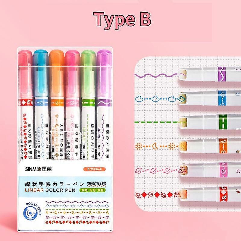 6/3pcs Flower Shape Outline Pens Highlighter Marker Curve Roller Tip Pen Stationery School Office Supplies Gifts