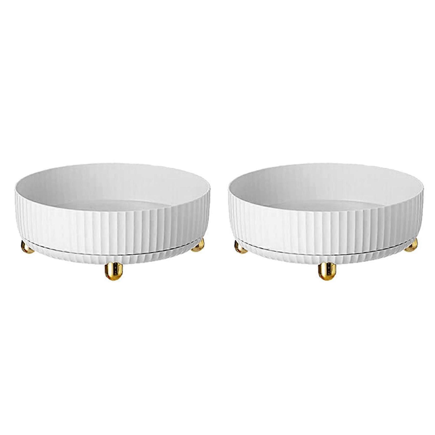 2X Rotatable Storage Shelf, Rotatable Spice Holder Organizer Carousel, Spice Rack Rotatable Pantry Cabinet Dresser White