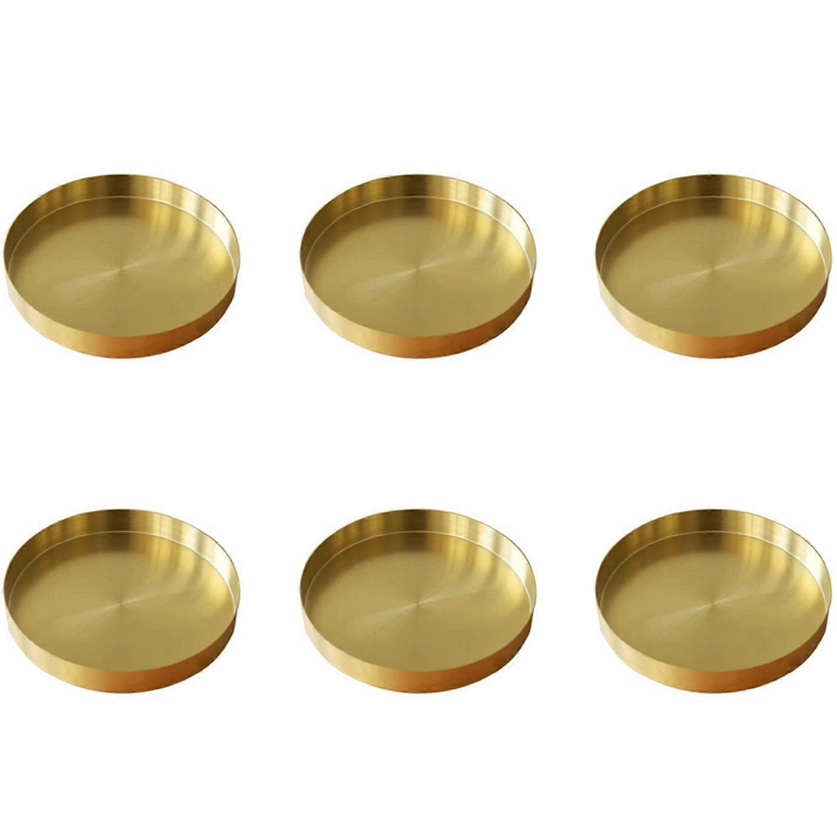 6X Round Gold Tray,Metal Decorative Tray Makeup Tray Organizer for Vanity,Bathroom,Dress,Matte Brass Finish, 4.9 Inch